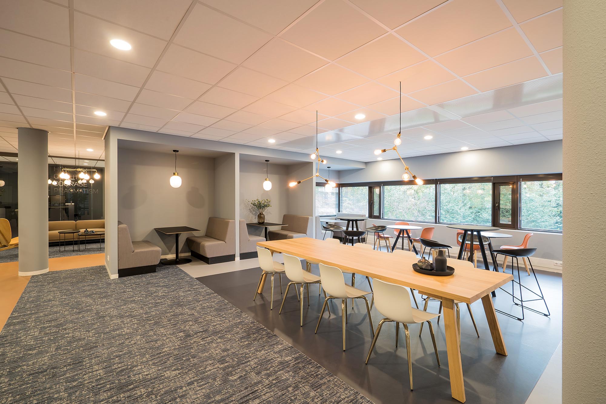 Het ontwerp van de renovatie van het nieuwe hoofdkantoor in Arnhem is van quub interior designs.