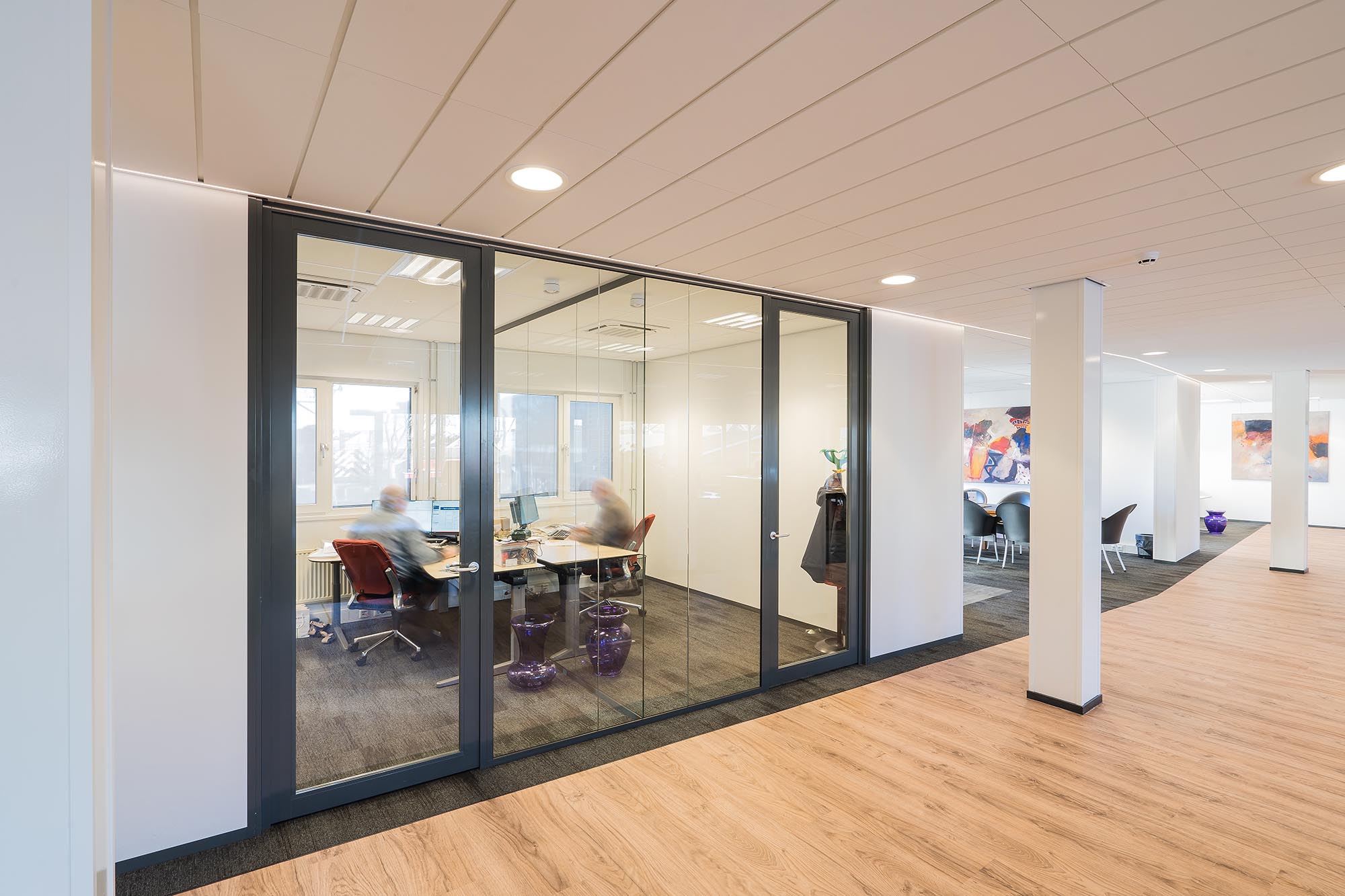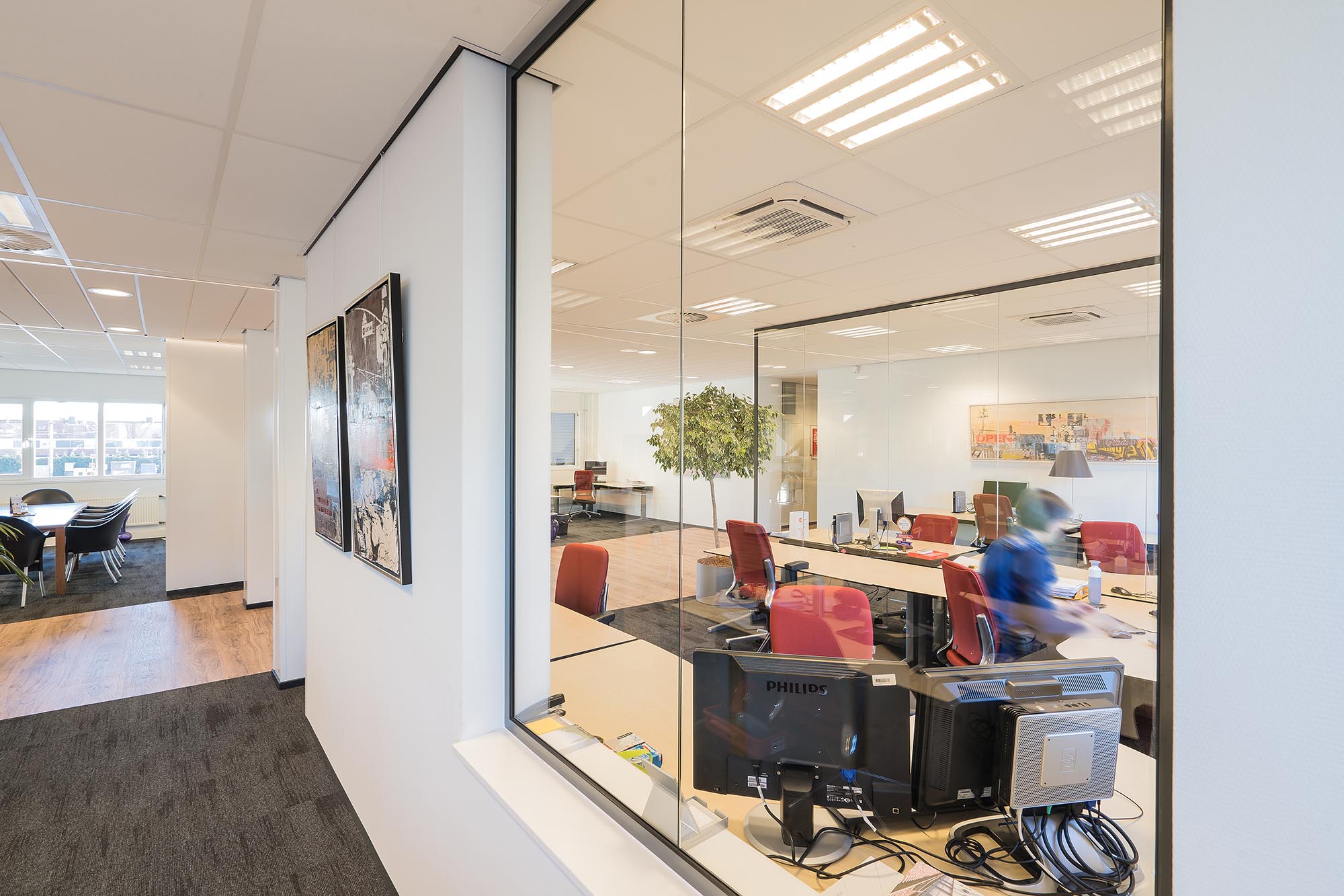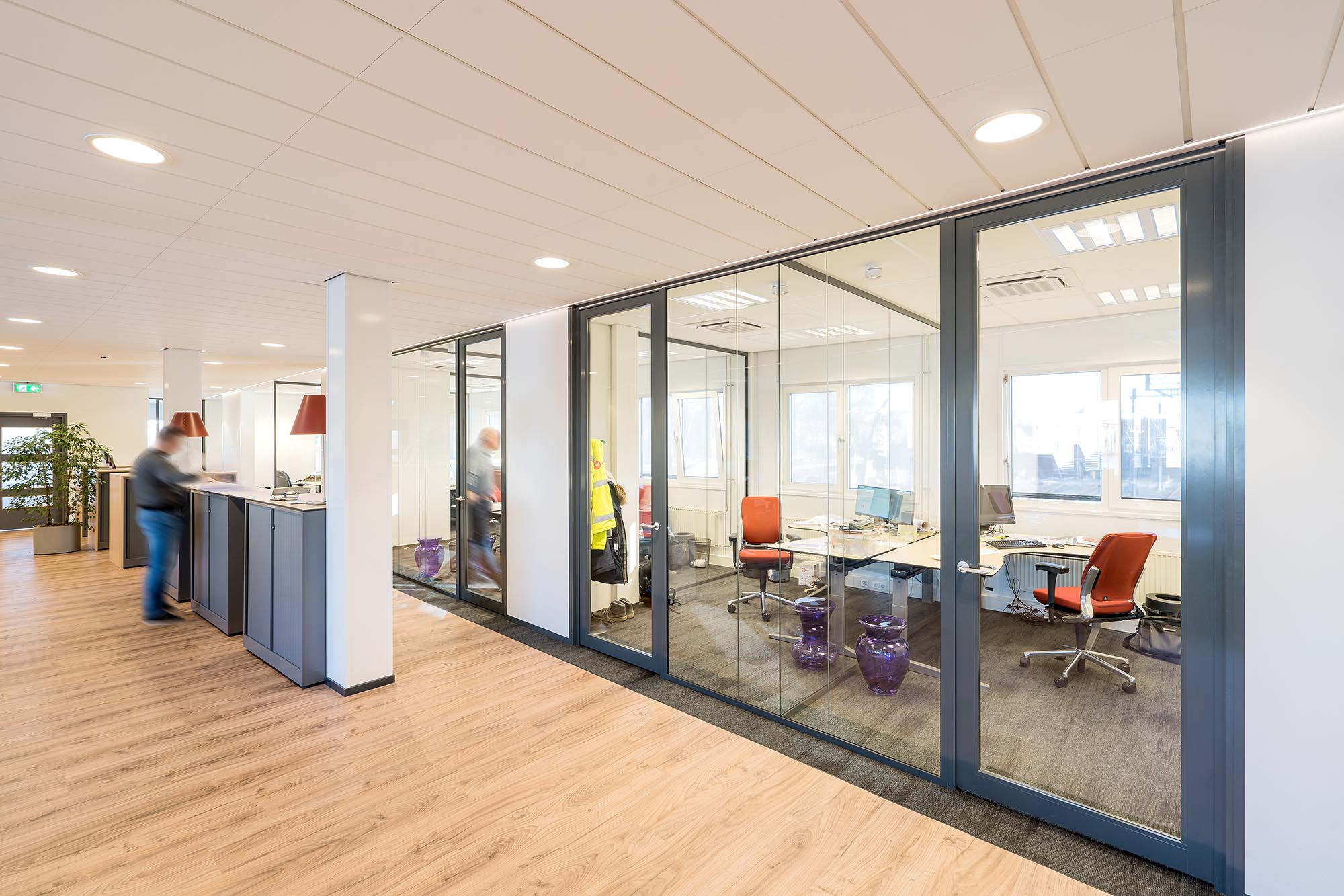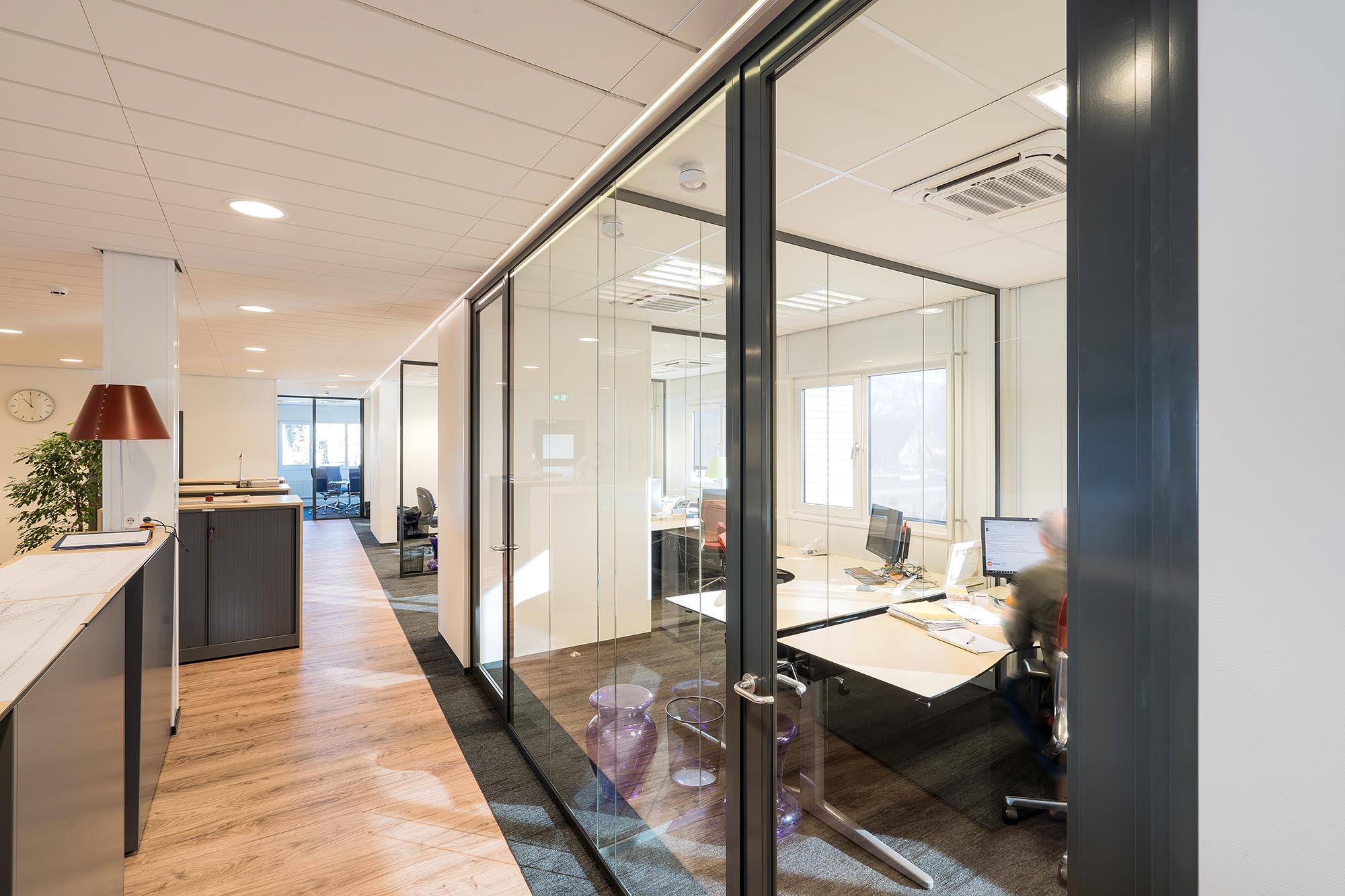 Voor Averesch BV Bouwontwikkeling & Realisatie, naar een ontwerp van I’M Architecten, heeft Intermontage de glazen wanden en de kaderdeuren gerealiseerd. Met het grote glasoppervlak in de gevel is er zo optimaal gebruik gemaakt van bestaand licht binnen het pand over alle vier de bouwlagen.