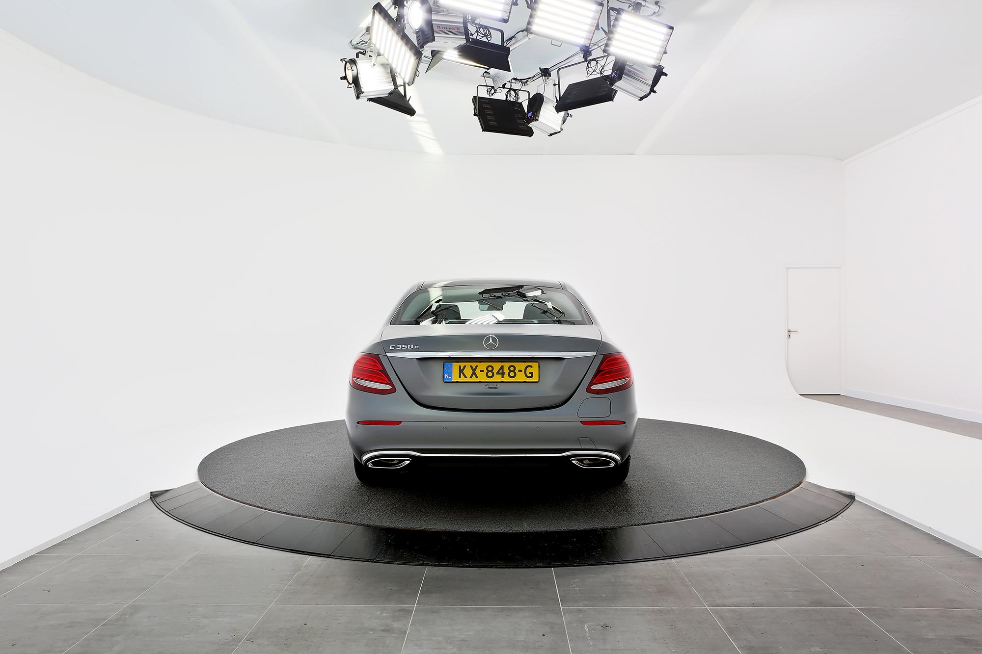 In de bestaande showroom zijn vrijstaande metalstudwanden neergezet. Binnen die wanden is een volautomatische studio gecreëerd. De bolide wordt op een schijf gereden die 360 graden kan draaien. Drie camera’s maken terwijl de auto ronddraait 108 foto’s vanuit iedere hoek. Zo kan Wensink binnen een paar minuten een volledig overzicht maken van iedere auto.