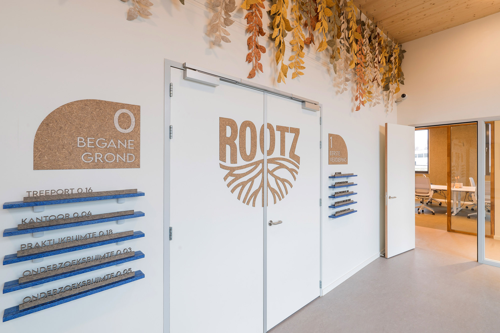 In het hart van Business Centre Treeport in Zundert is Rootz gerealiseerd: het nieuwe kennis- en innovatiecentrum voor de boomkwekerijsector. Een plek waar onderwijs, ondernemerschap en onderzoek samenkomen. Een gebouw met een missie – én met een duidelijke visie op duurzaamheid, circulariteit en samenwerking.