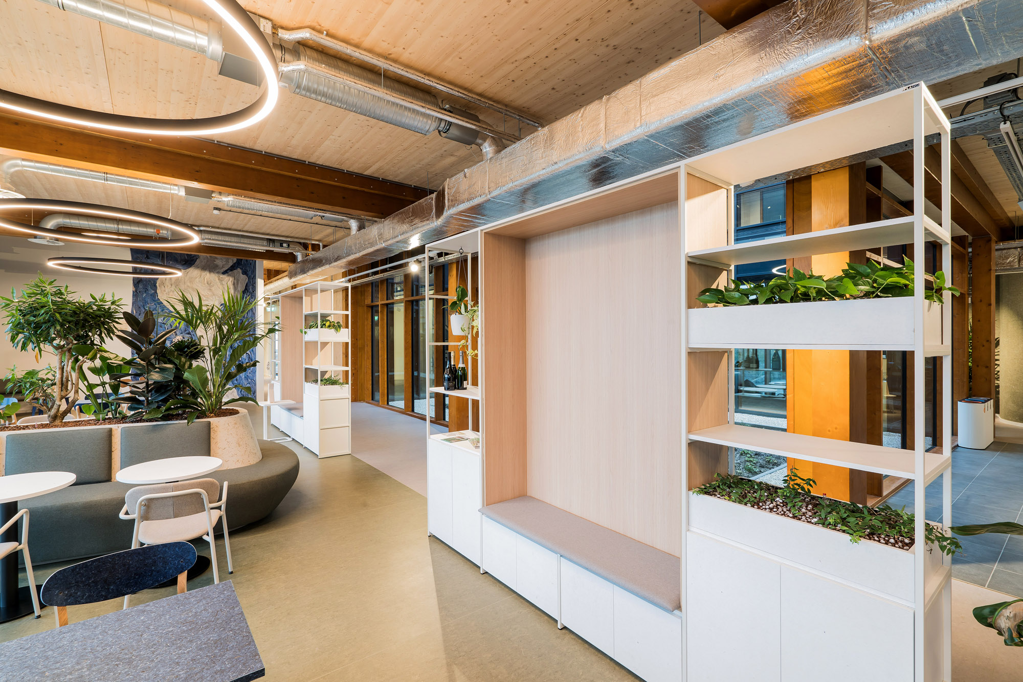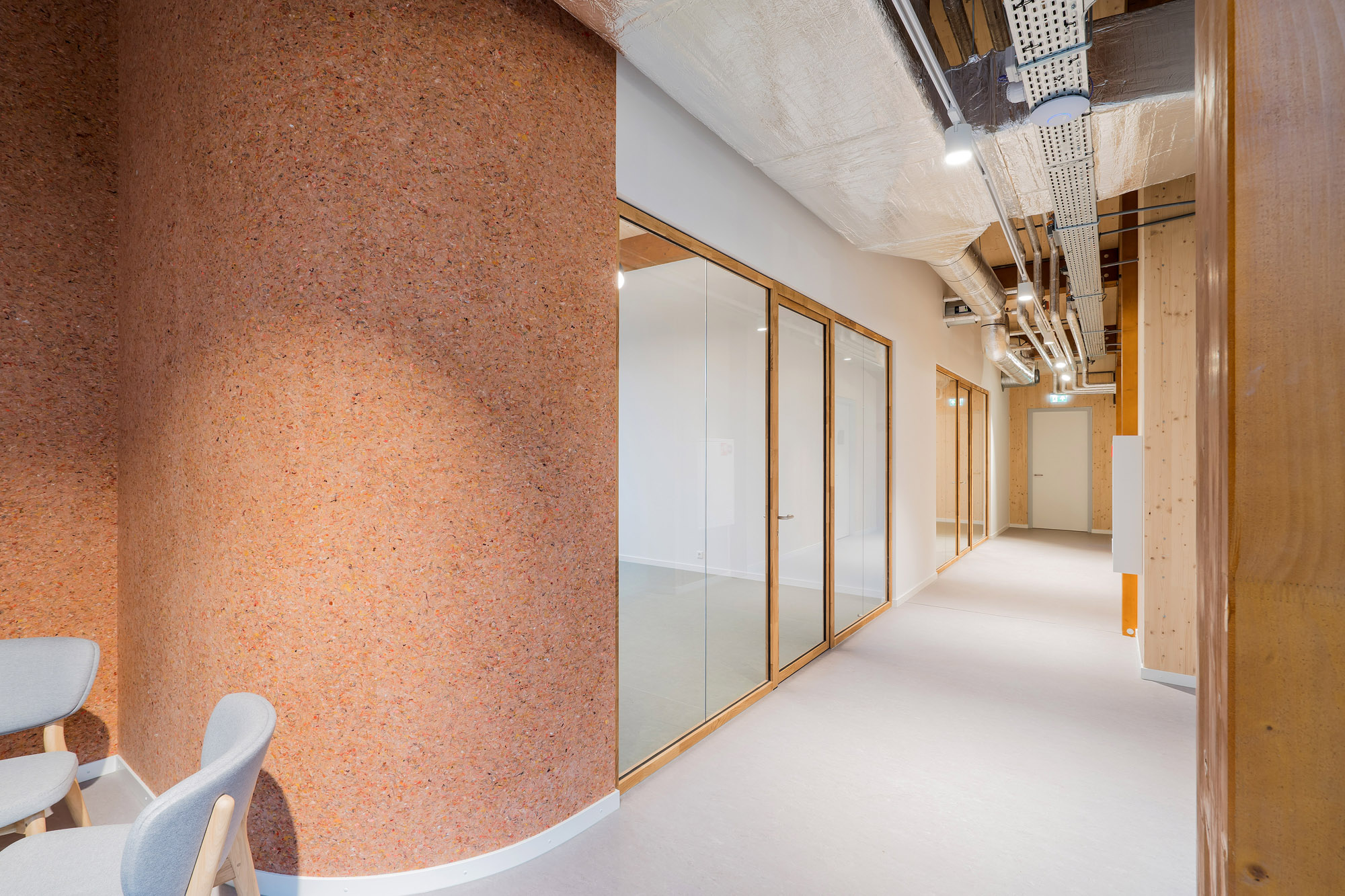 De wanden zijn demontabel, herbruikbaar en ontworpen met oog voor de toekomst – passend binnen het streven naar flexibel gebruik van ruimtes. Daarmee dragen ze niet alleen bij aan de warme sfeer, maar ook aan de duurzame identiteit van het gebouw.