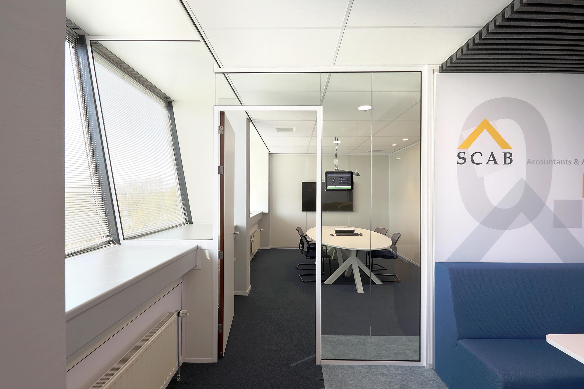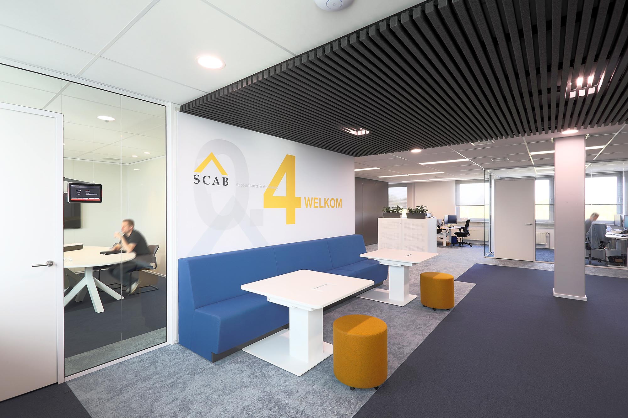 SCAB heeft de afgelopen maanden een ware metamorfose ondergaan. Met nieuwe inzichten gebaseerd op onderzoeken en interne analyses door organisatie adviseur Veldhoen + Company, heeft men voor SCAB een maatwerk invulling gecreëerd. Consequentie hiervan was wel dat de bestaande inrichting op de schop moest, hetgeen door Jeroen van Dijk is vertaald in een passend interieur. Van een traditioneel cellenkantoor is men overgegaan naar een open functiegerichte inrichting, waar ontmoeten en communicatie als vanzelf plaatsvinden.