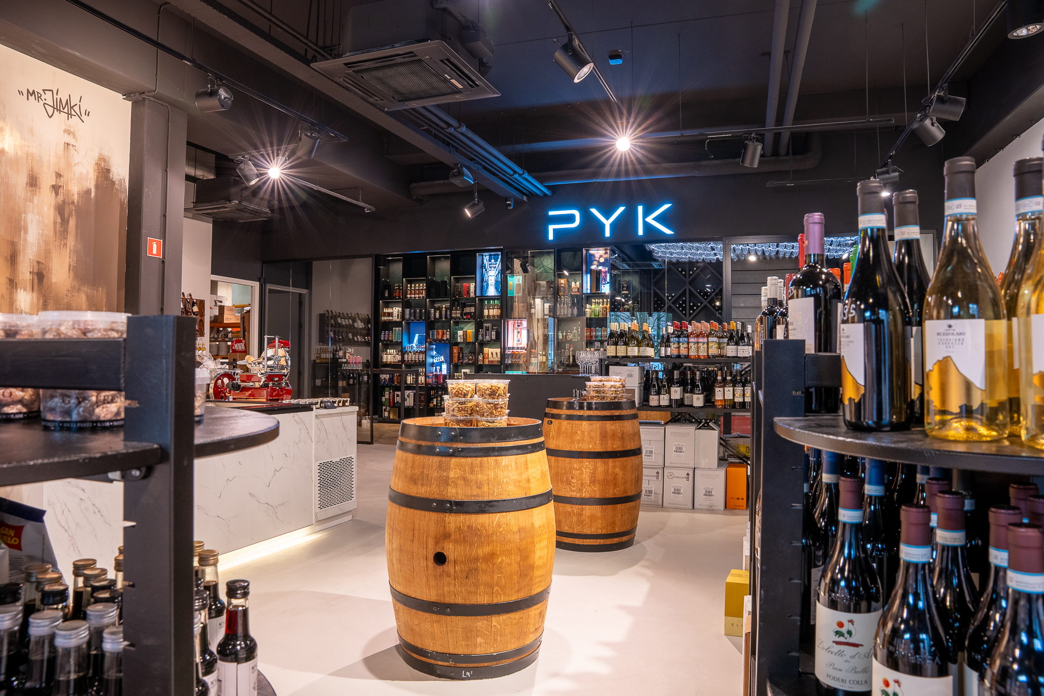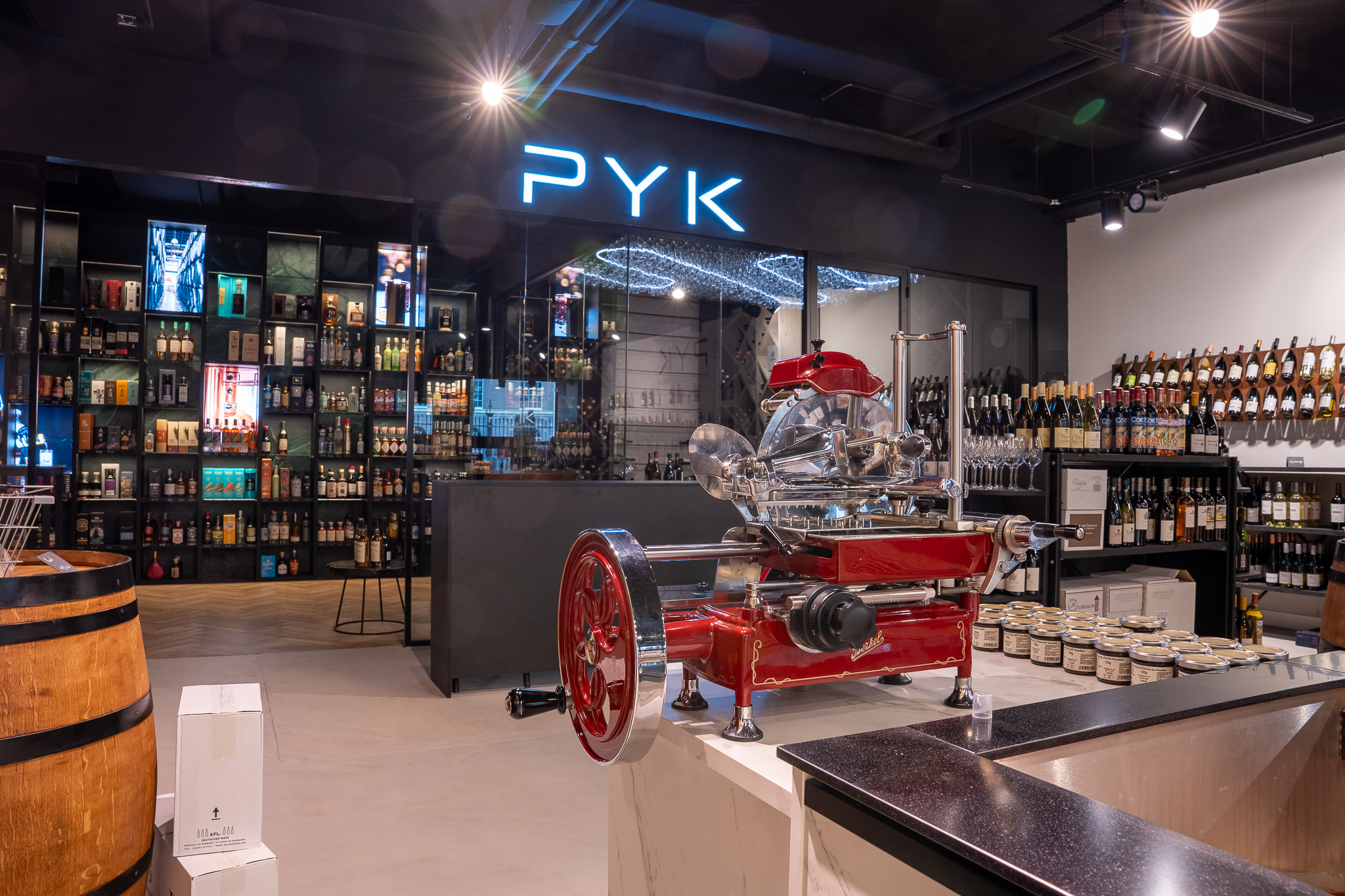 Voor Pyk Slyterij realiseerde Intermontage de wanden voor de inrichting van een slijterij en wijnbar, verdeeld over twee afzonderlijke ruimten. Het project kende een korte doorlooptijd van anderhalve maand en vroeg om snelle besluitvorming, duidelijke afstemming en maakbare oplossingen binnen een strak tijdsbestek.