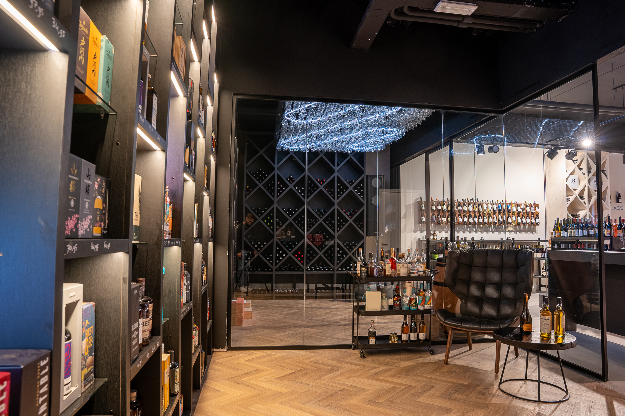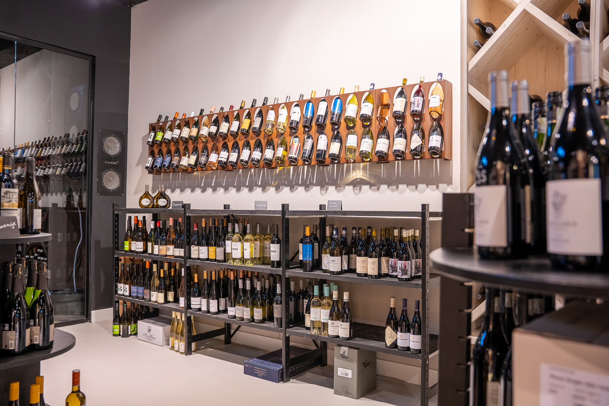 Resultaat: een compacte en overzichtelijke inrichting waarin winkel, wijnbar en gekoelde opslag logisch samenkomen. Alle onderdelen zijn binnen de beschikbare tijd gerealiseerd, met aandacht voor techniek, routing en de specifieke eisen per ruimte.