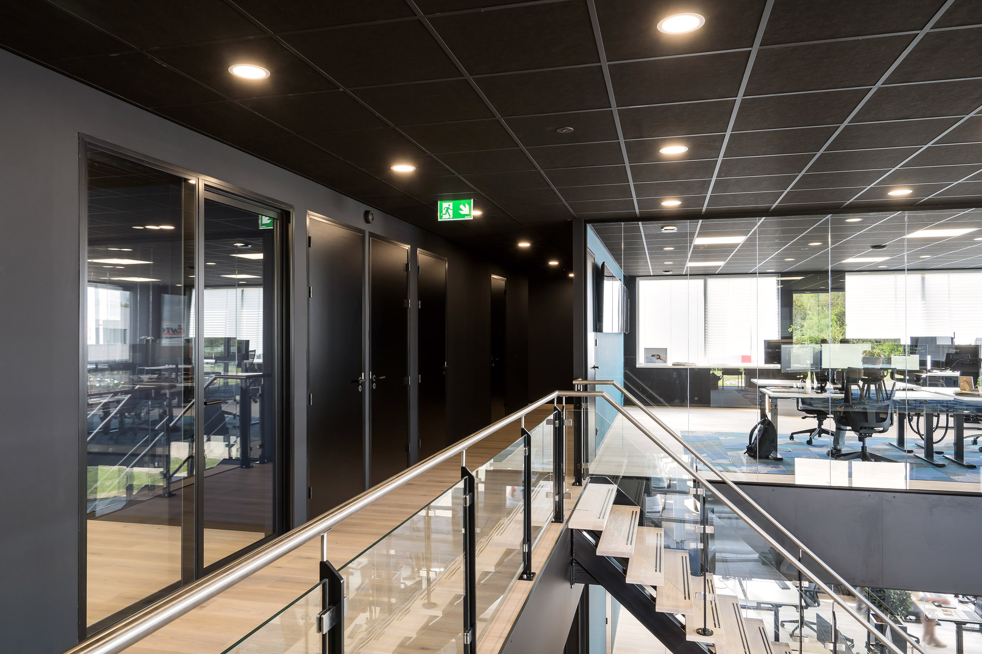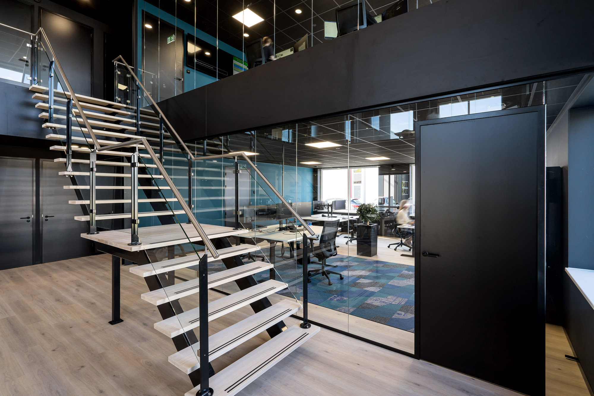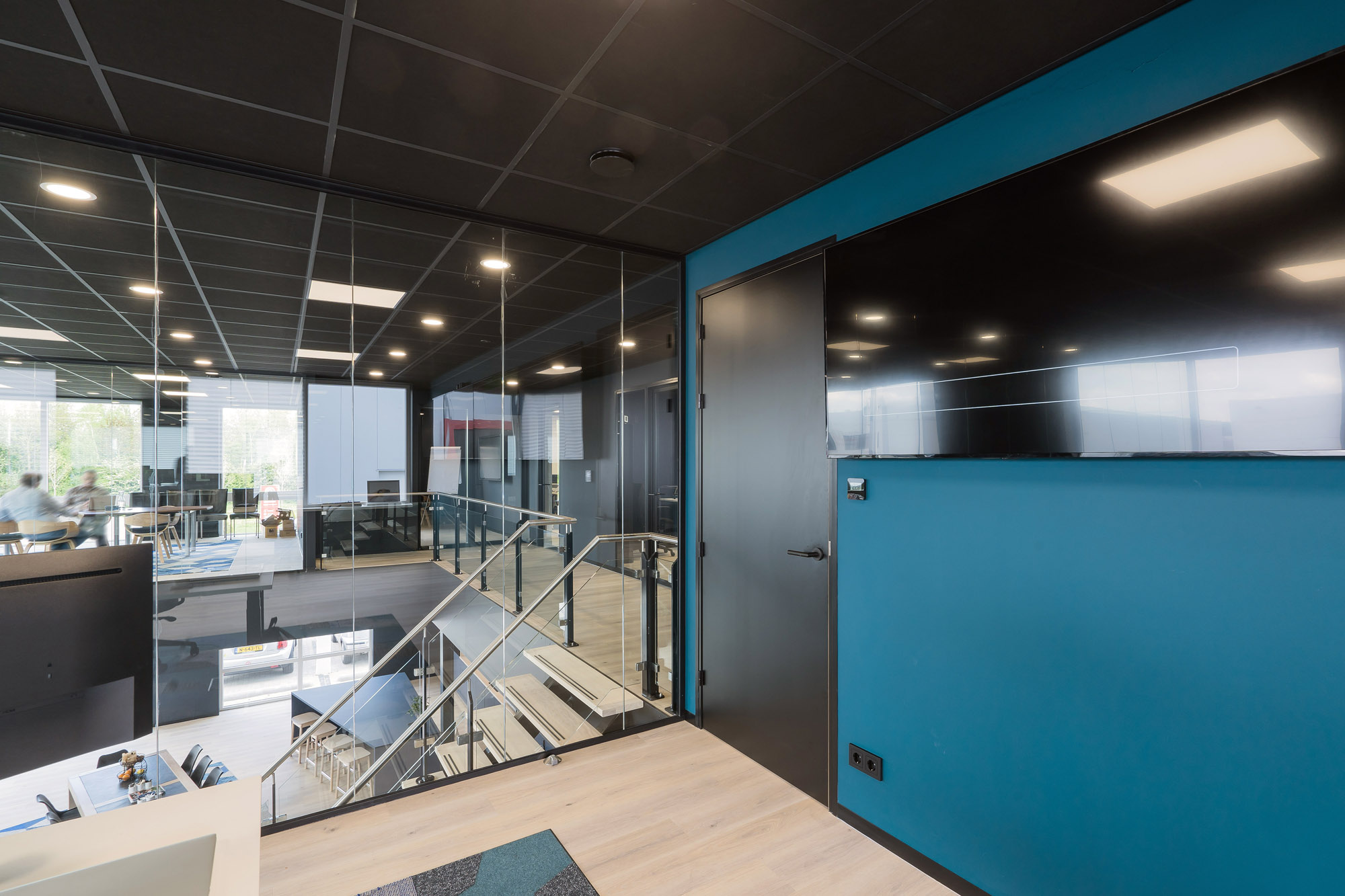 De glaswanden in de vide van het kantoor zijn doorvalveilig uitgevoerd. Bij binnenkomst is de openheid van het kantoor duidelijk zichtbaar. De transparantie van hoe Solid Partners te werk gaat wordt hierdoor extra benadrukt. De doorvalveilige glaswanden zijn 100% veilig en voldoen aan de hoogste eisen. Doorvalveilige glazen systeemwanden worden getest middels een glasparelzakslingerproef. Dit is een test om aan te tonen dat onze doorvalveilige glaswanden in de praktijk voldoen aan alle eisen