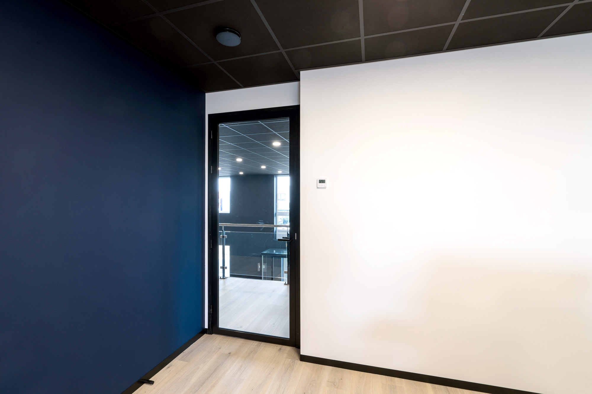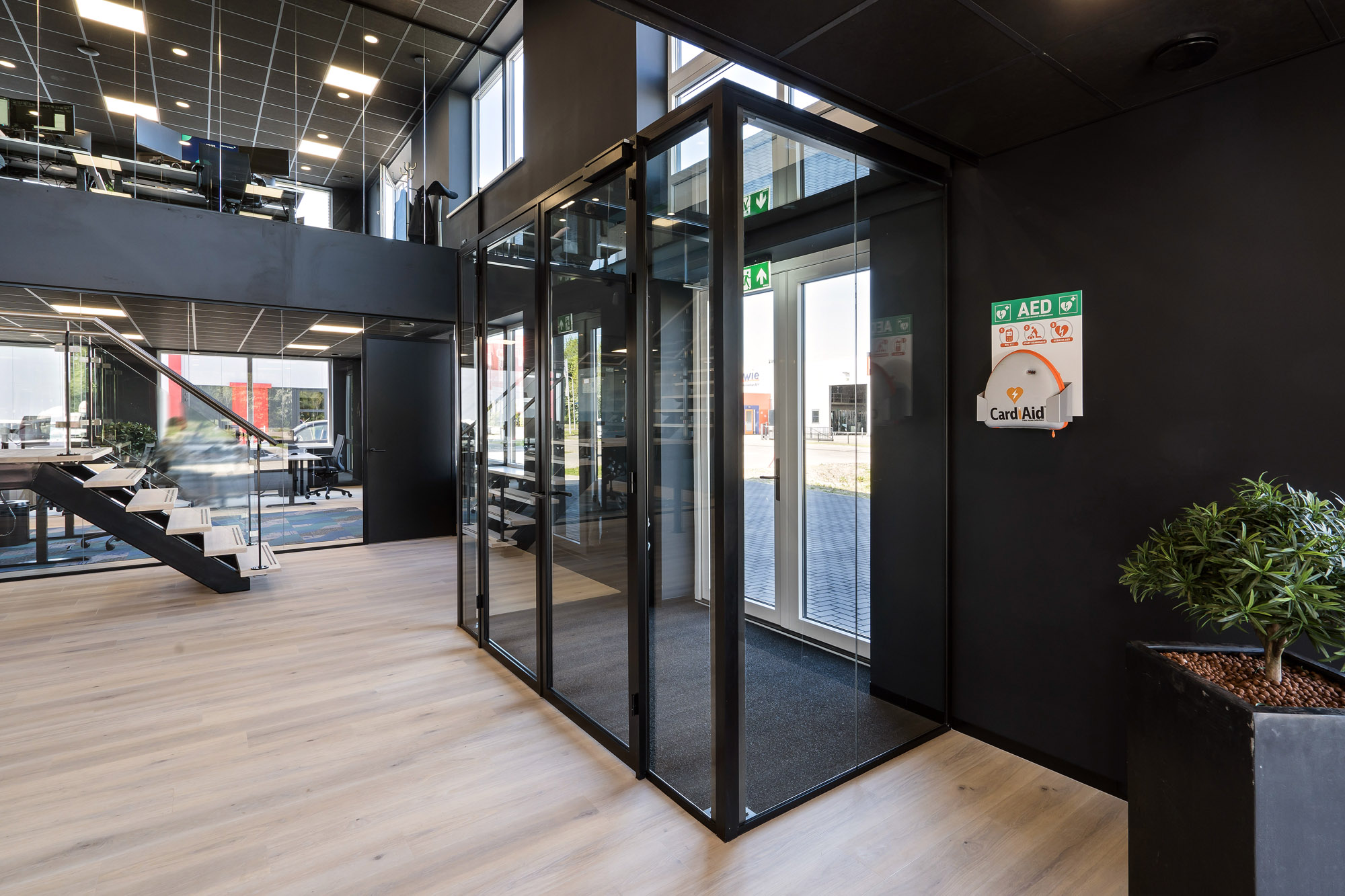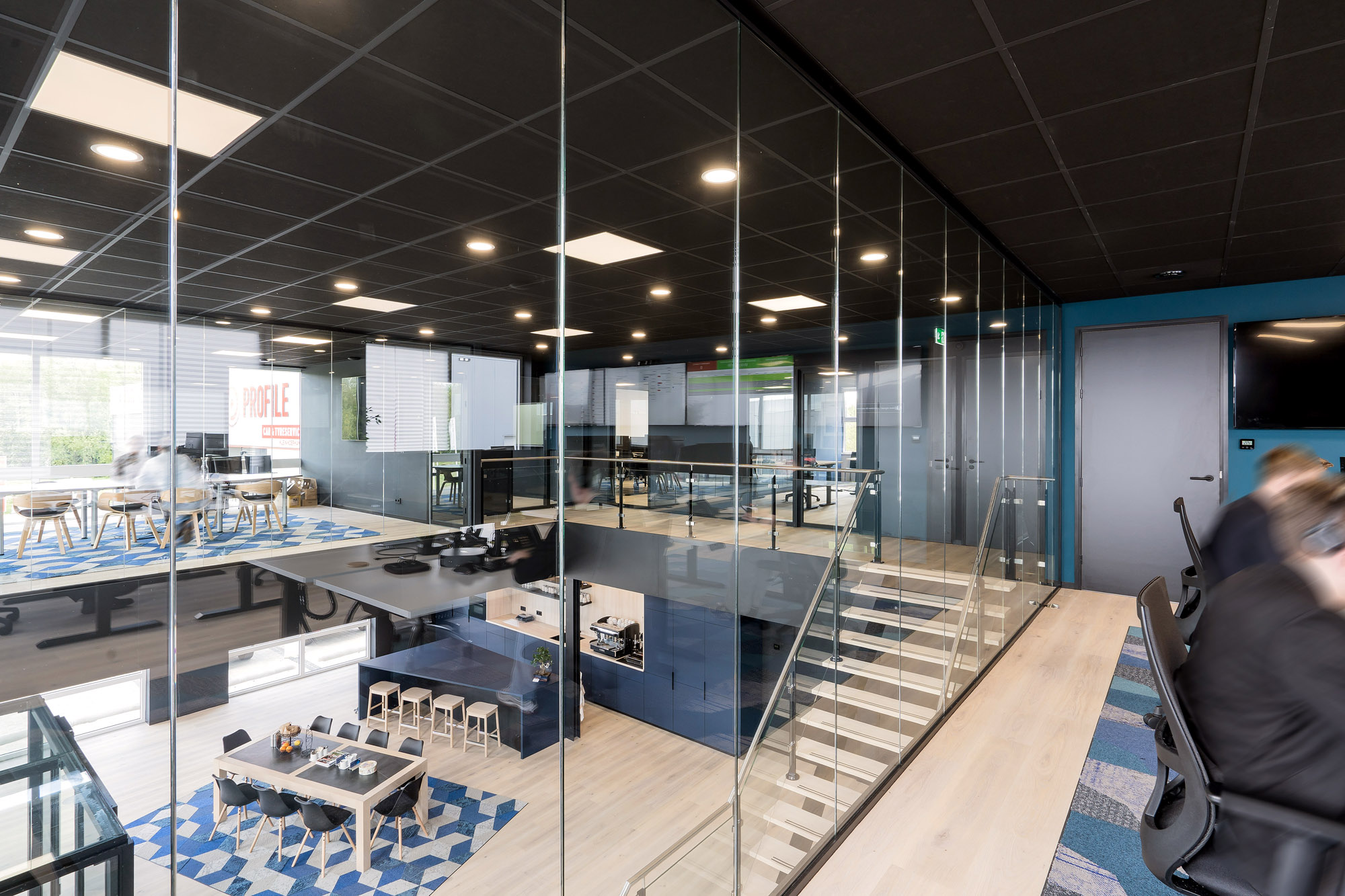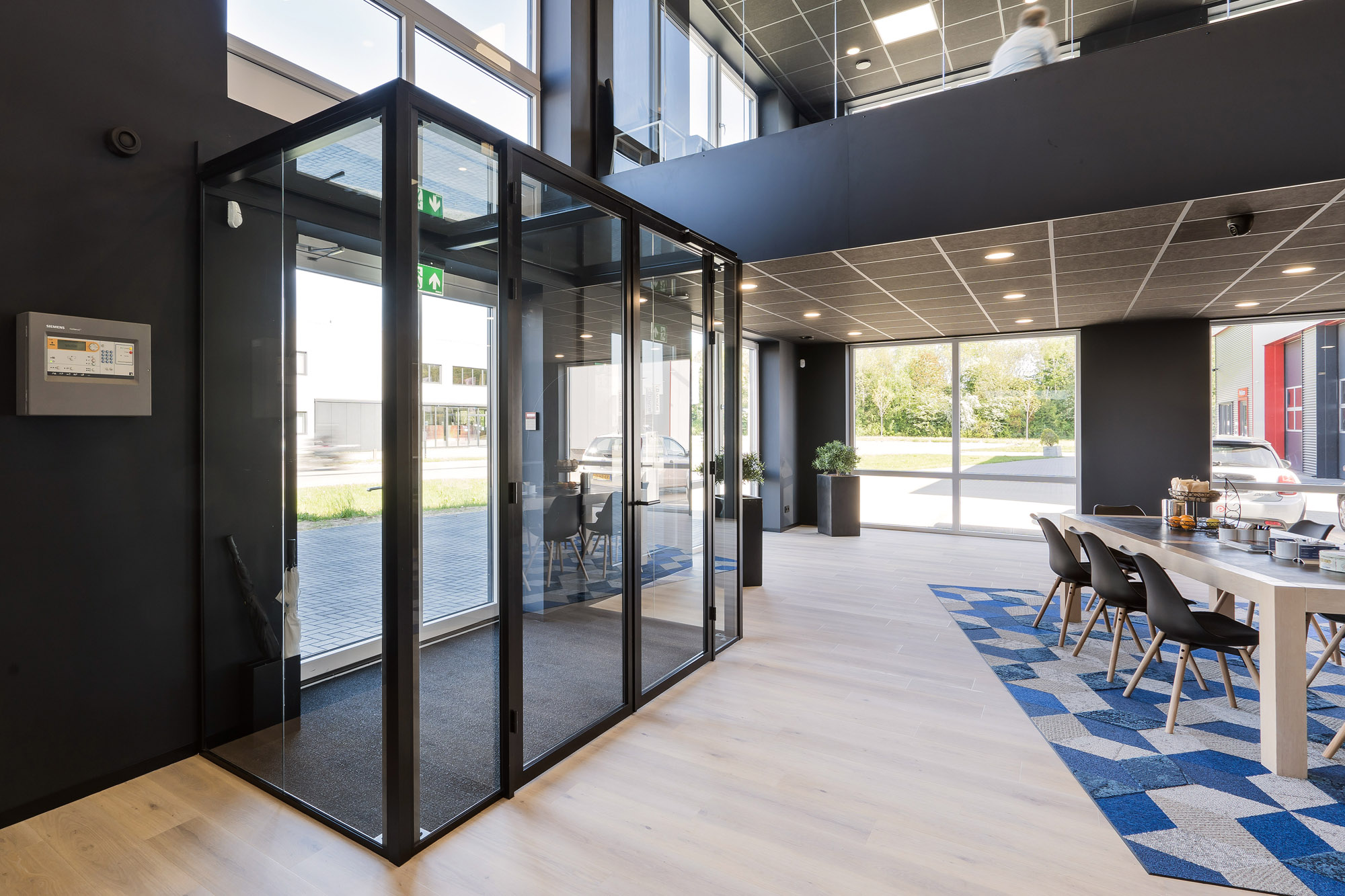 De glaswanden in de vide van het kantoor zijn doorvalveilig uitgevoerd. Bij binnenkomst is de openheid van het kantoor duidelijk zichtbaar. De transparantie van hoe Solid Partners te werk gaat wordt hierdoor extra benadrukt. De doorvalveilige glaswanden zijn 100% veilig en voldoen aan de hoogste eisen. Doorvalveilige glazen systeemwanden worden getest middels een glasparelzakslingerproef. Dit is een test om aan te tonen dat onze doorvalveilige glaswanden in de praktijk voldoen aan alle eisen