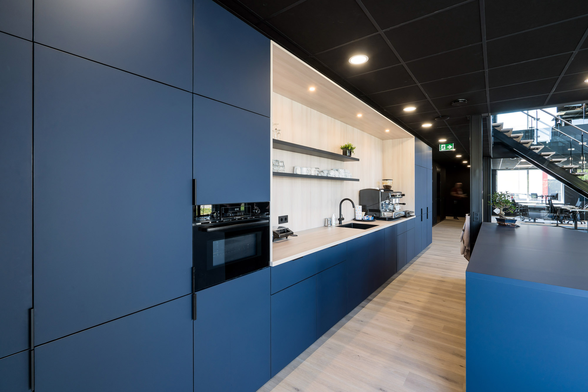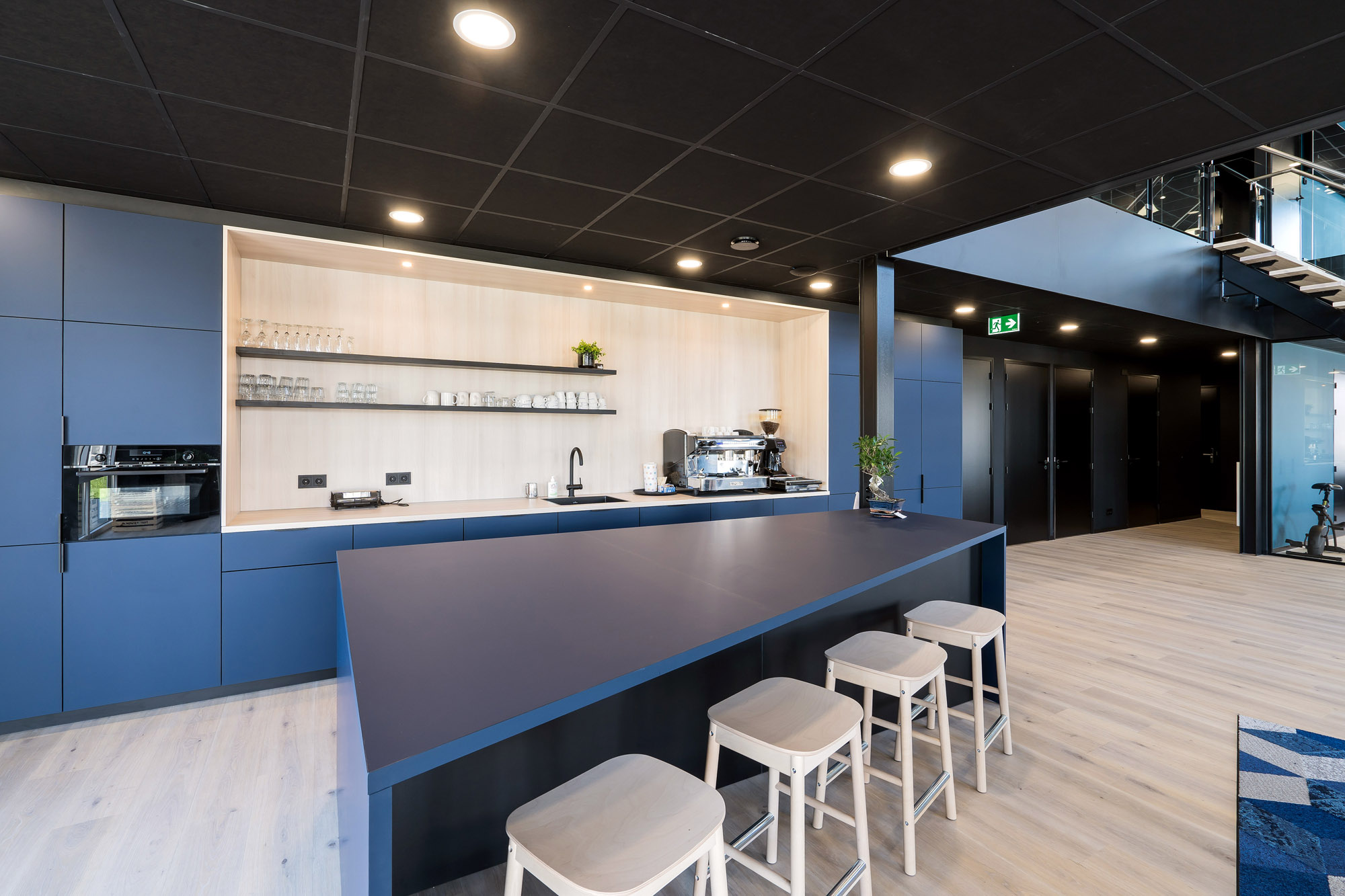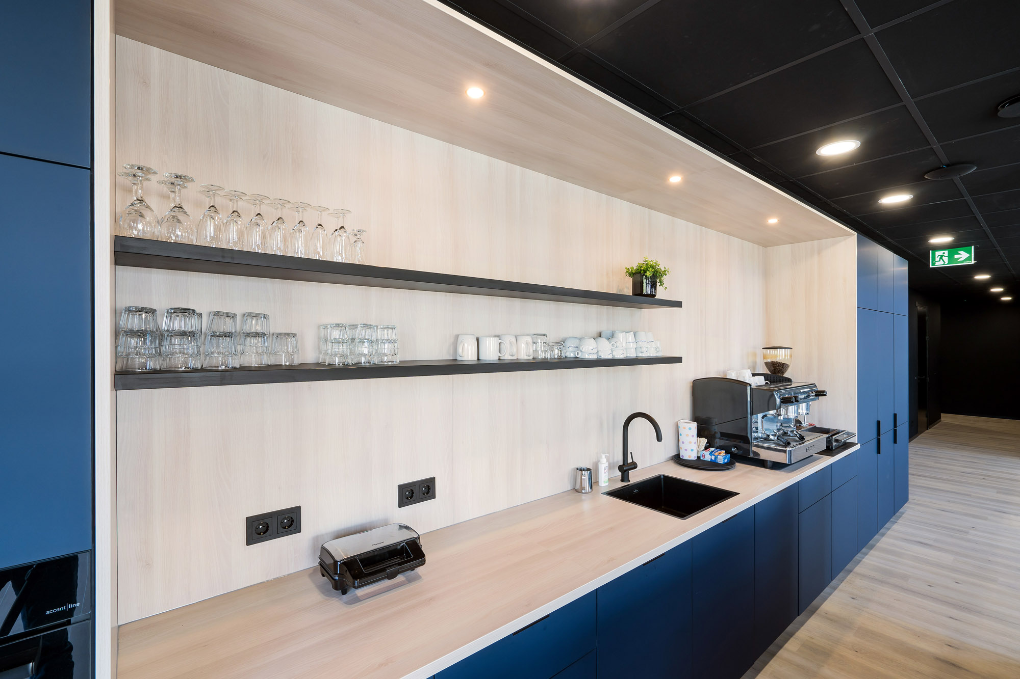 De pantry is de ontmoetingsplek van het kantoor. Het nodigt uit voor die lekkere kop koffie. Het faciliteert tegelijkertijd ook de gezamenlijke lunch met de medewerkers. De maatwerk barmeubel en pantry vormen één geheel. Geheel in de stijl van Solid Partners uitgevoerd en voorzien van alle functionaliteiten.