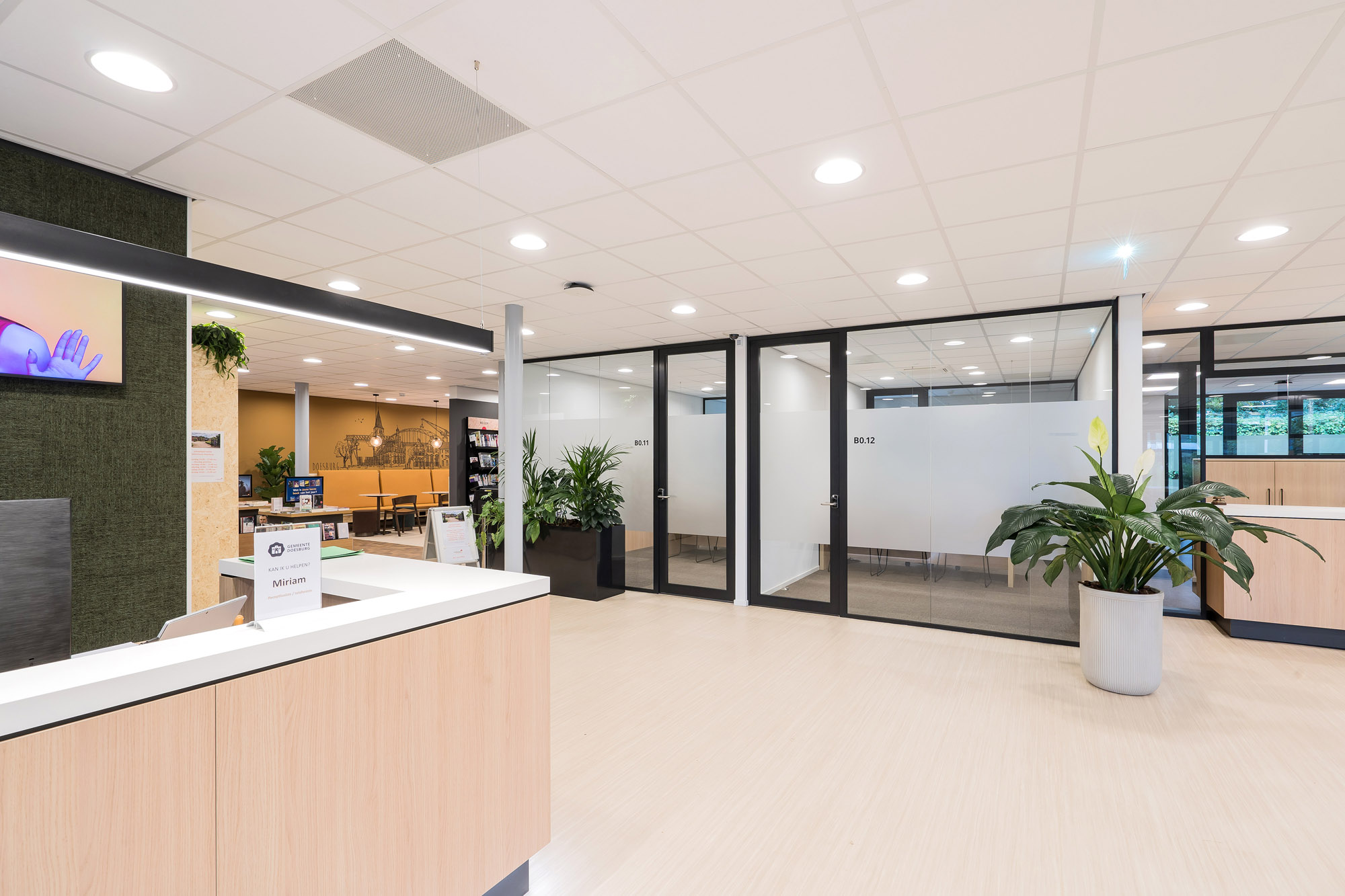 Een leegstaand kantoorpand is gerenoveerd naar een levendig en functioneel kantoor dat voldoet aan alle hedendaagse normen qua werkcomfort en duurzaamheid. Voor zowel de inwoners van Doesburg als de ambtenaren is er een (werk-)omgeving gecreëerd die rust, concentratie en welzijn bevordert.