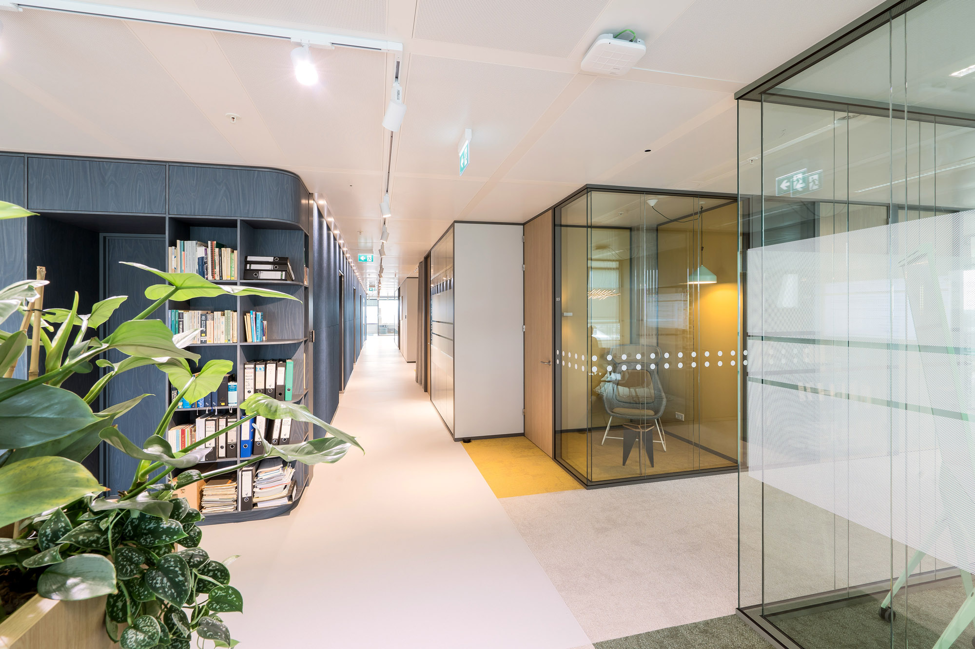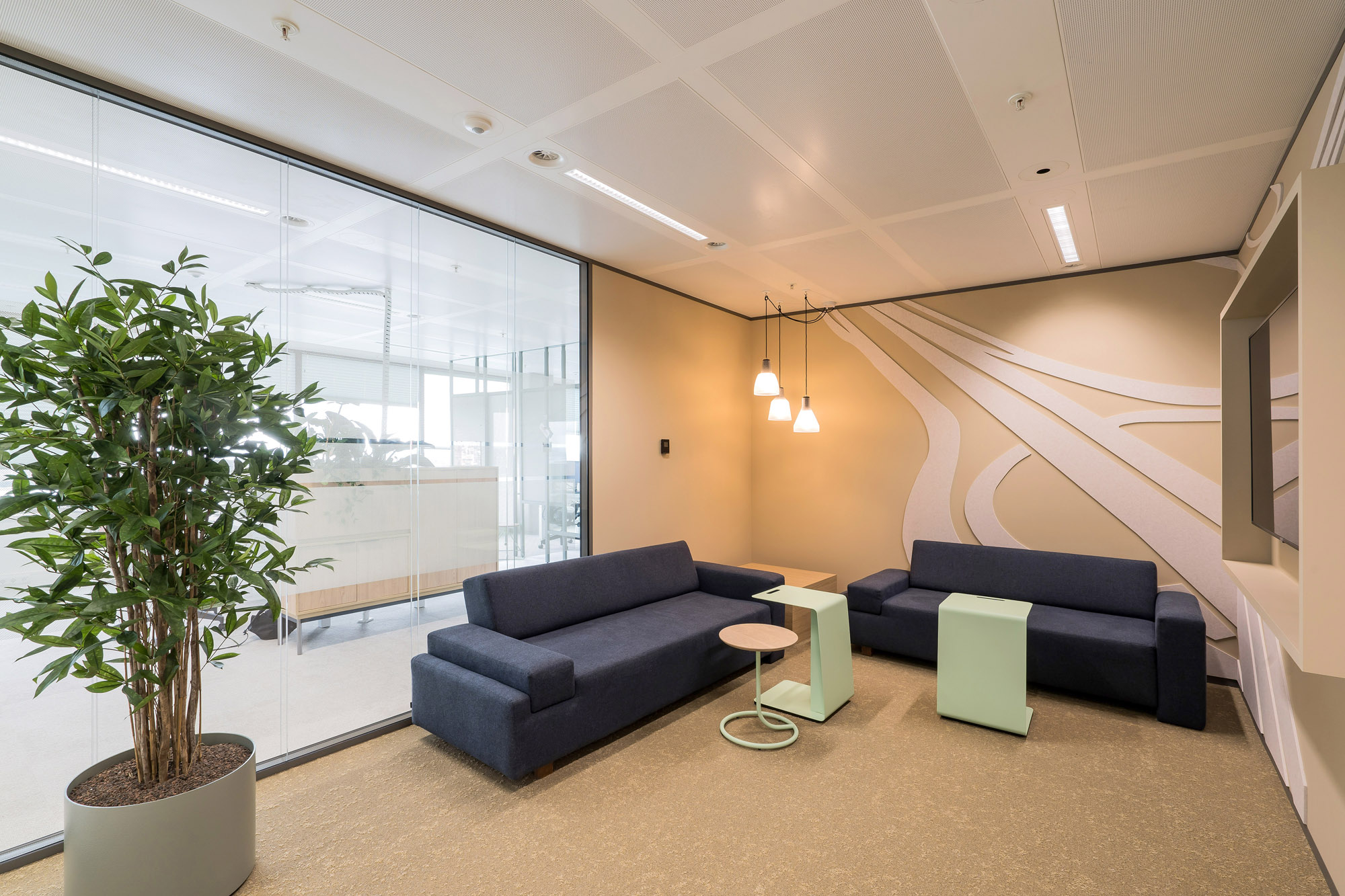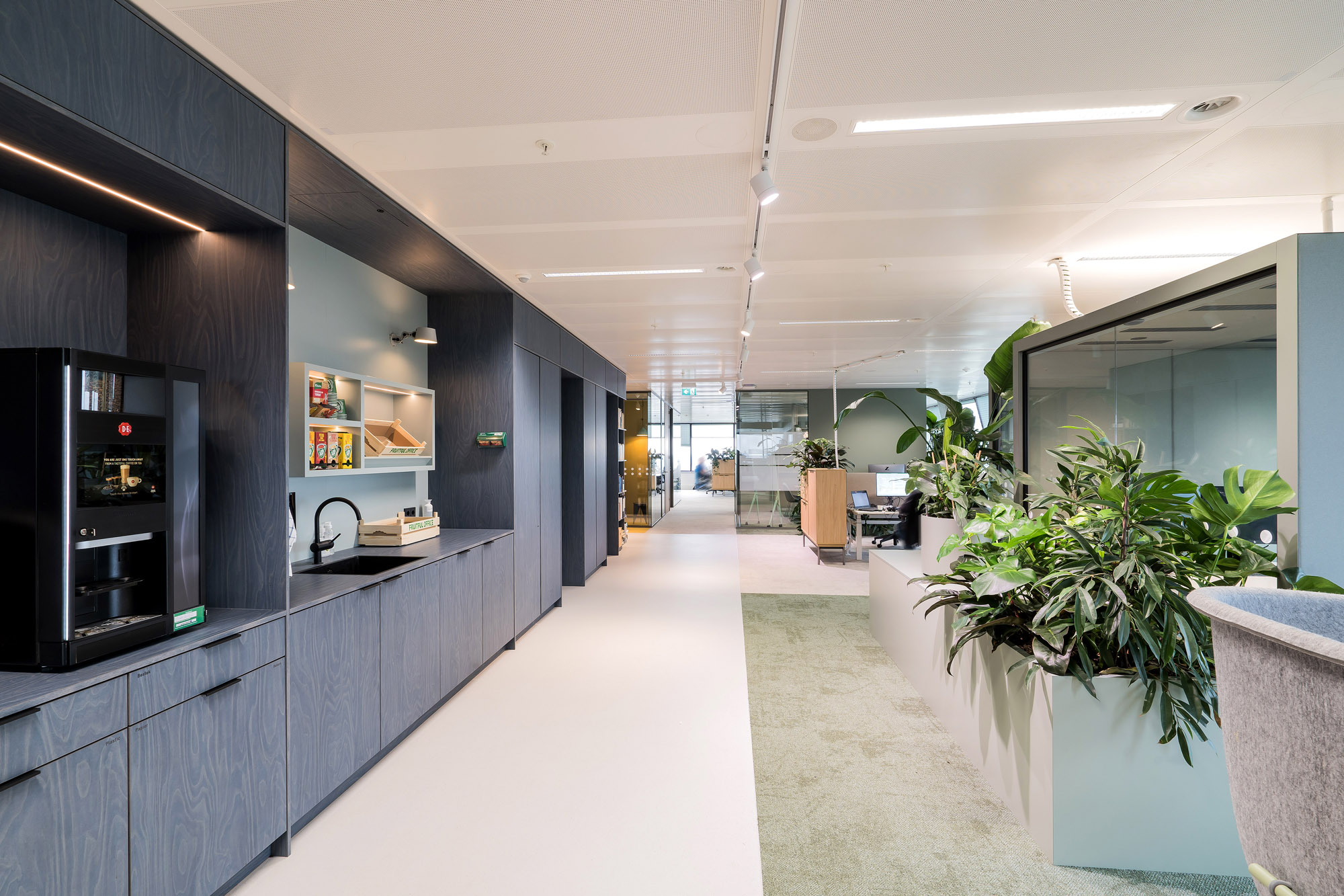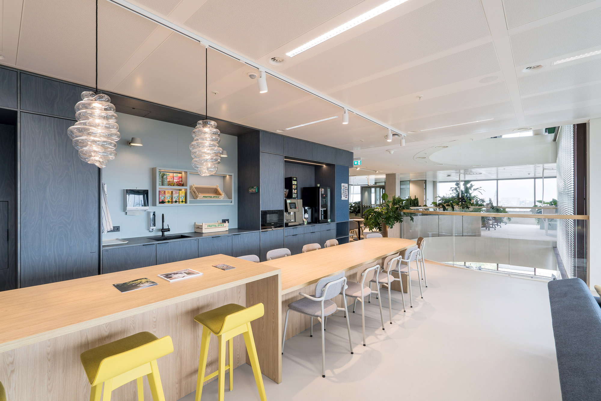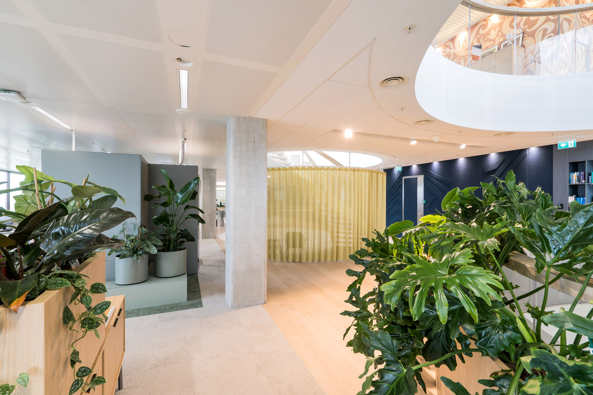 Door Intermontage zijn op de 10e verdieping stof- en geluidsschotten geplaatst om hinder naar de andere verdiepingen te voorkomen. Hal2 heeft een interieurconcept gecreëerd met de nadruk op het welzijn van mensen en de planeet. De werkomgeving is een ontmoetingsplek met een uitnodigende uitstraling, veel groen, warme materialen en hoogwaardige wanden en meubilair.