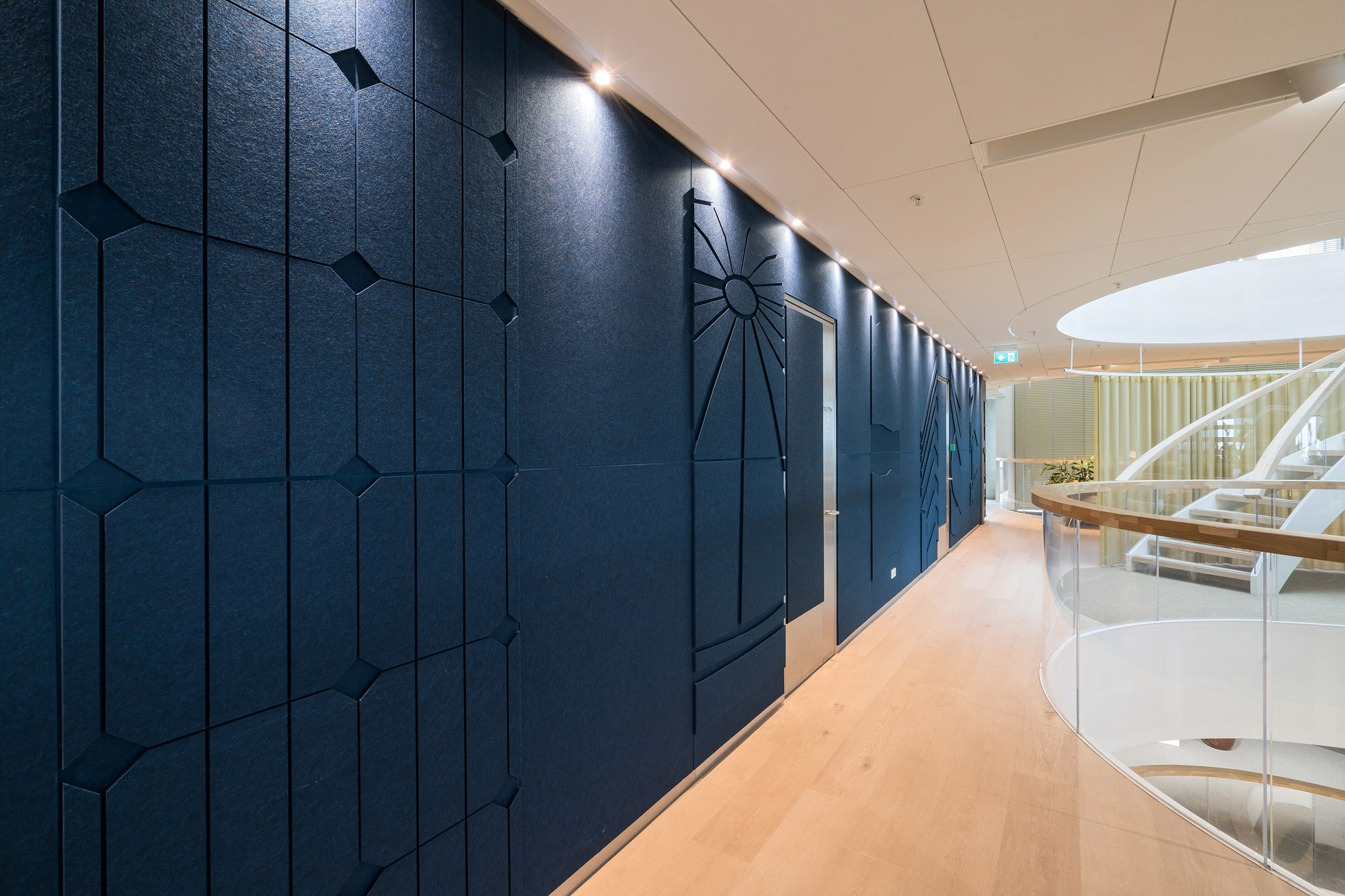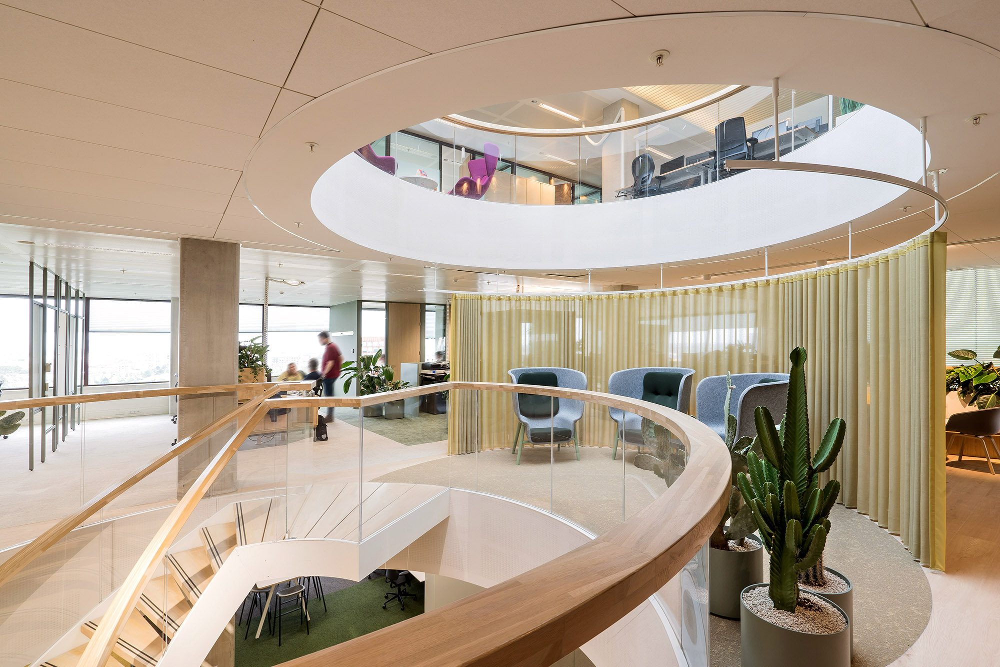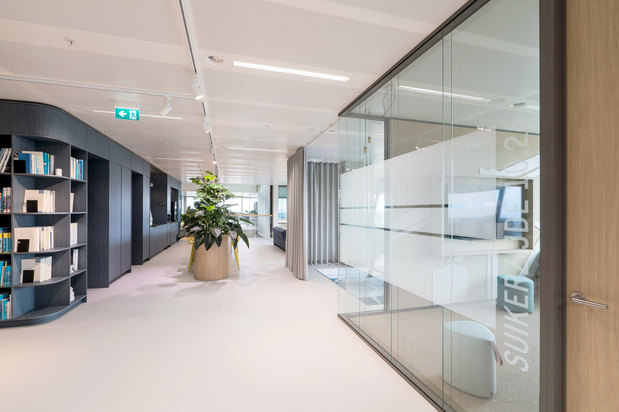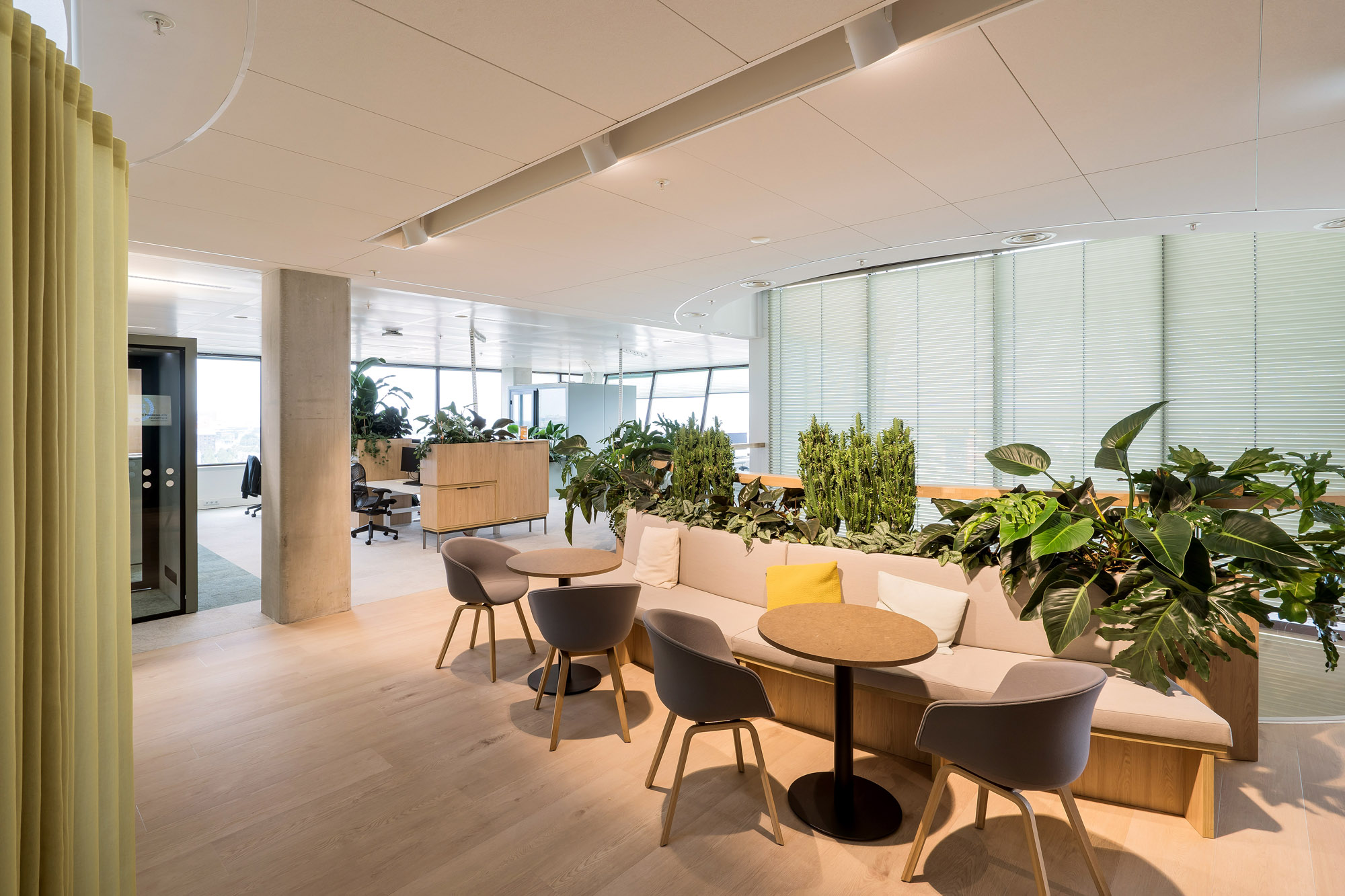 Door Intermontage zijn op de 10e verdieping stof- en geluidsschotten geplaatst om hinder naar de andere verdiepingen te voorkomen. Hal2 heeft een interieurconcept gecreëerd met de nadruk op het welzijn van mensen en de planeet. De werkomgeving is een ontmoetingsplek met een uitnodigende uitstraling, veel groen, warme materialen en hoogwaardige wanden en meubilair.