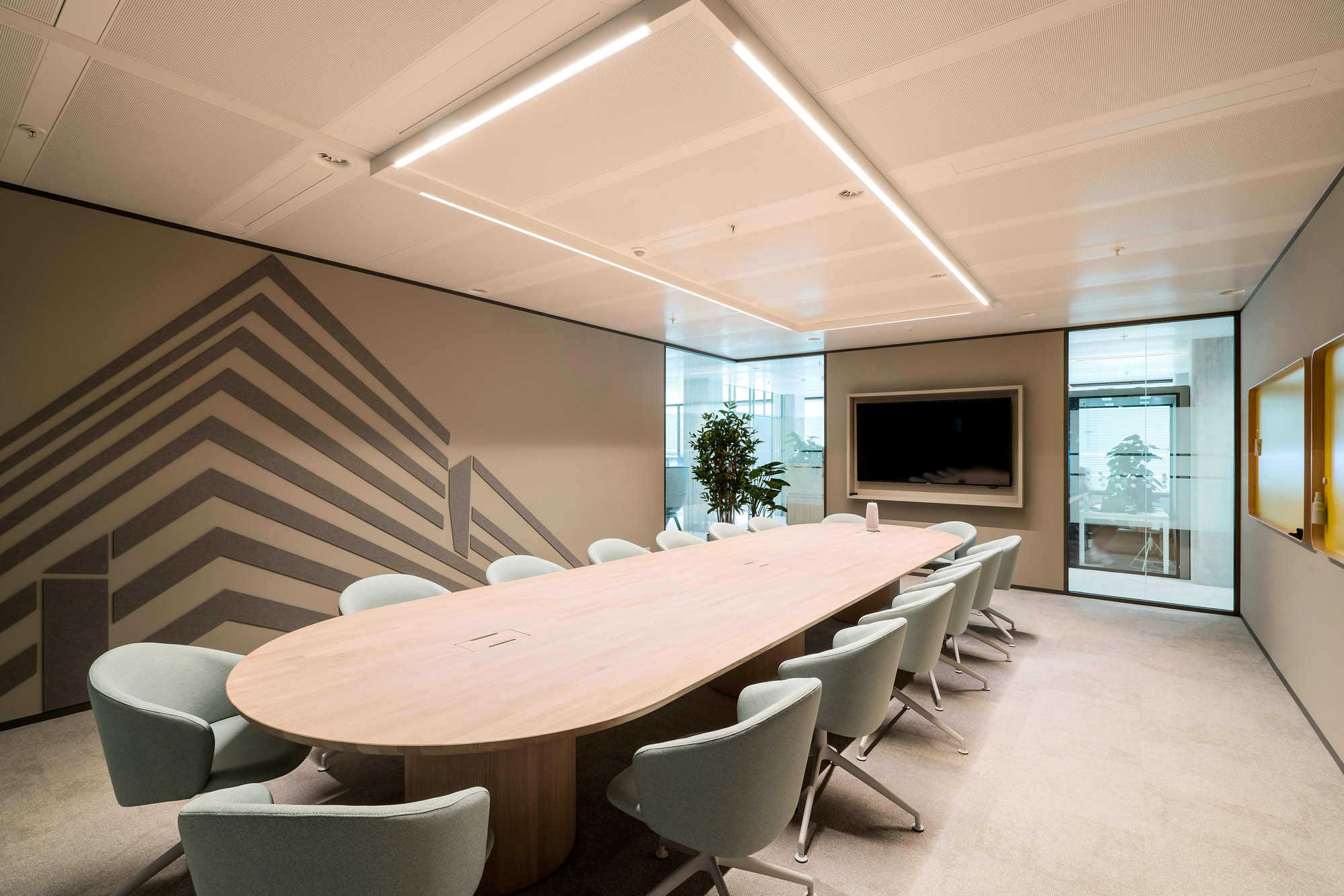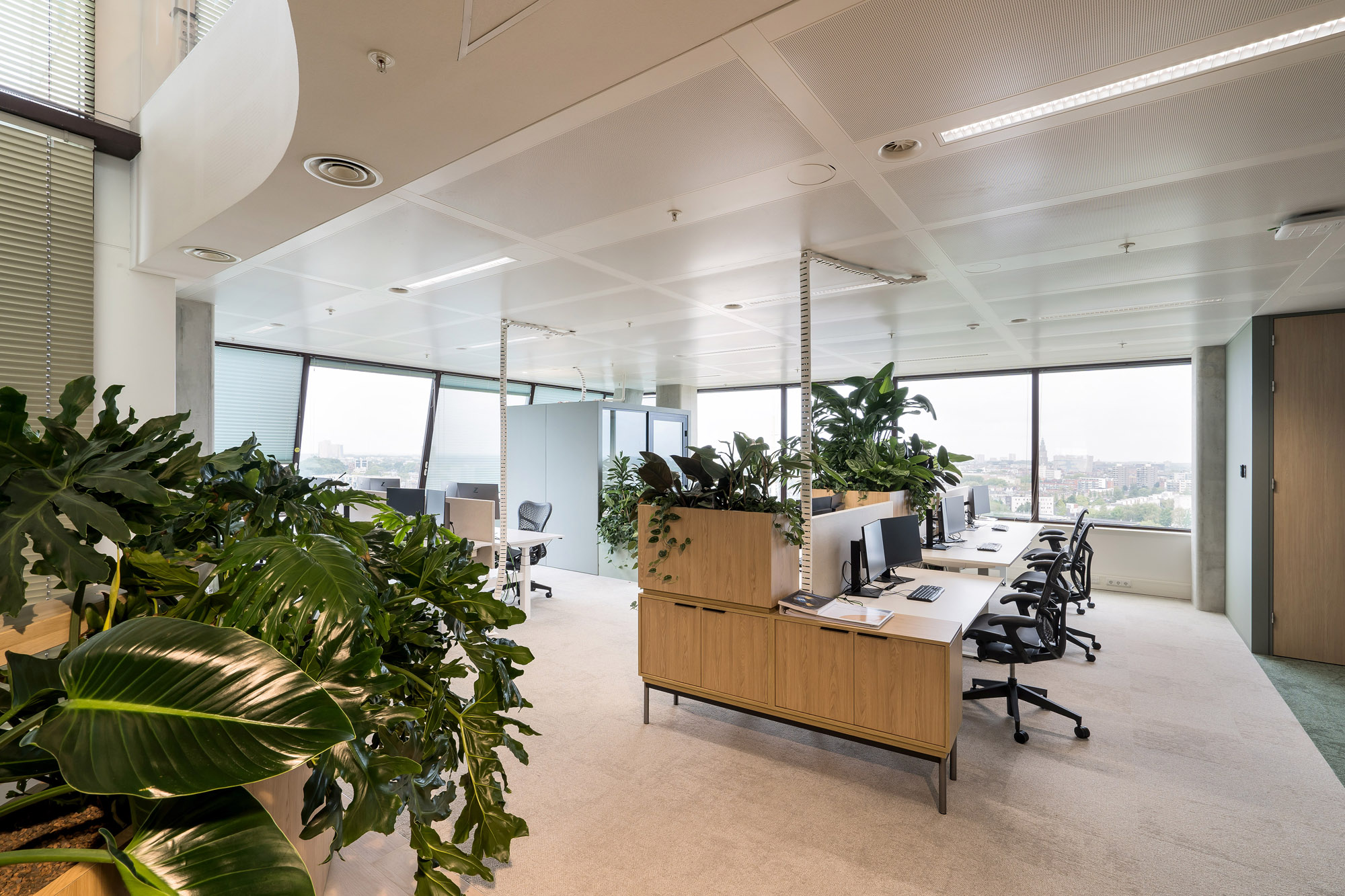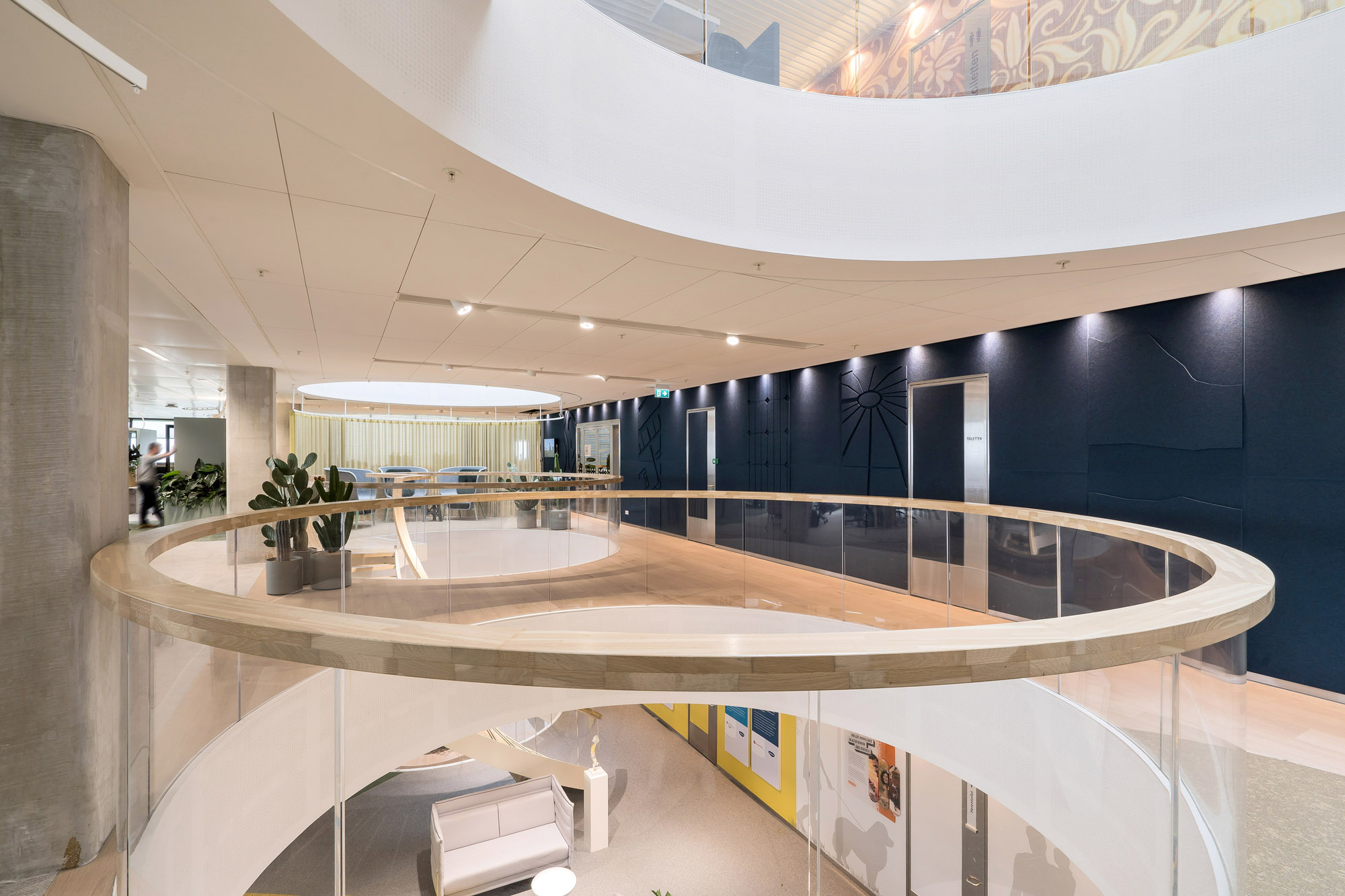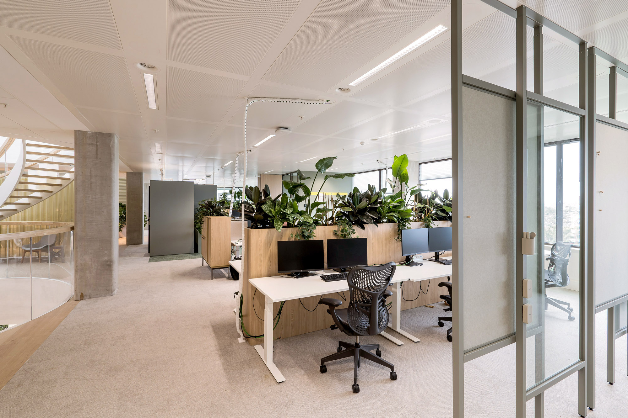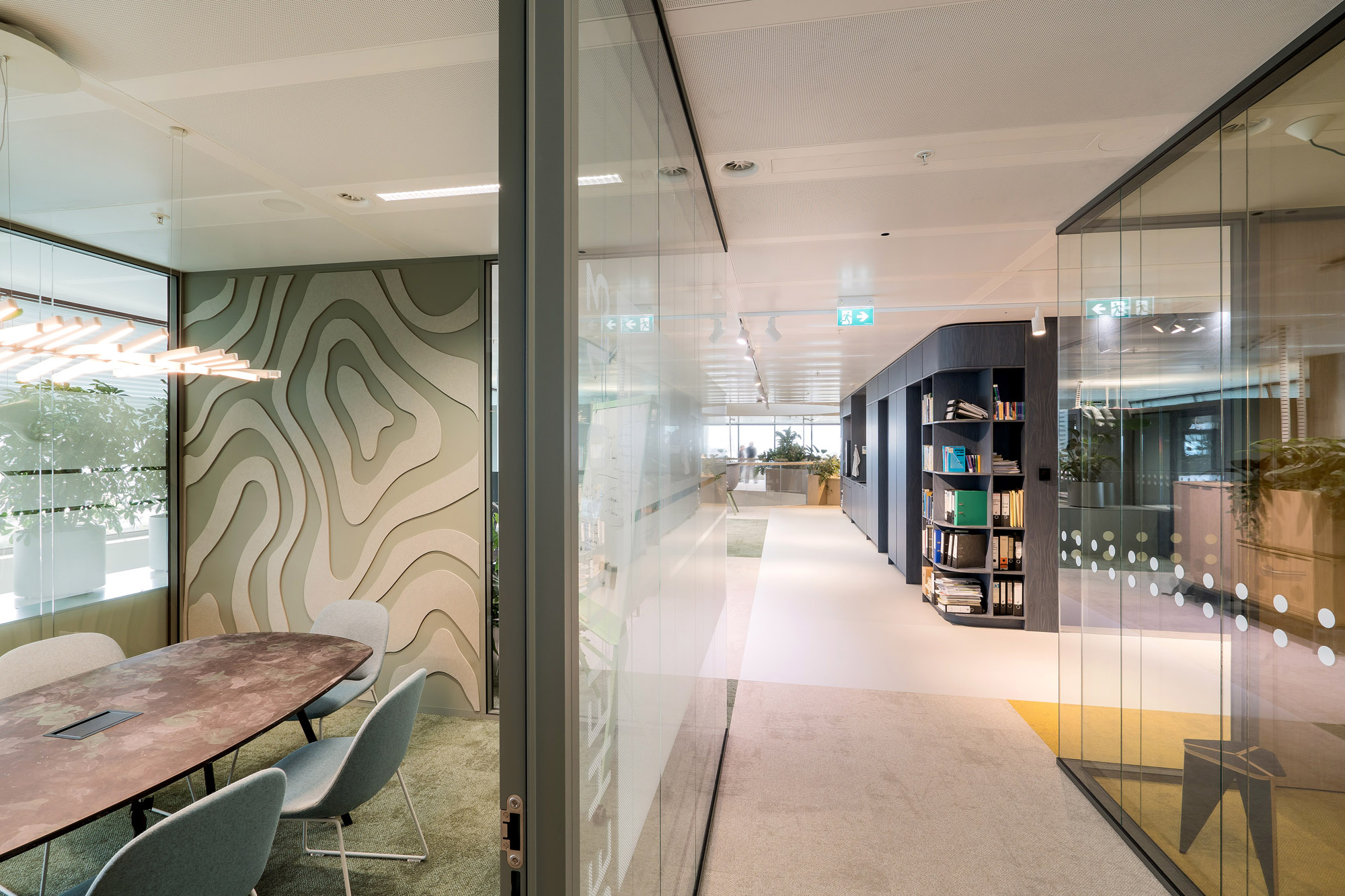 Door Intermontage zijn op de 10e verdieping stof- en geluidsschotten geplaatst om hinder naar de andere verdiepingen te voorkomen. Hal2 heeft een interieurconcept gecreëerd met de nadruk op het welzijn van mensen en de planeet. De werkomgeving is een ontmoetingsplek met een uitnodigende uitstraling, veel groen, warme materialen en hoogwaardige wanden en meubilair.