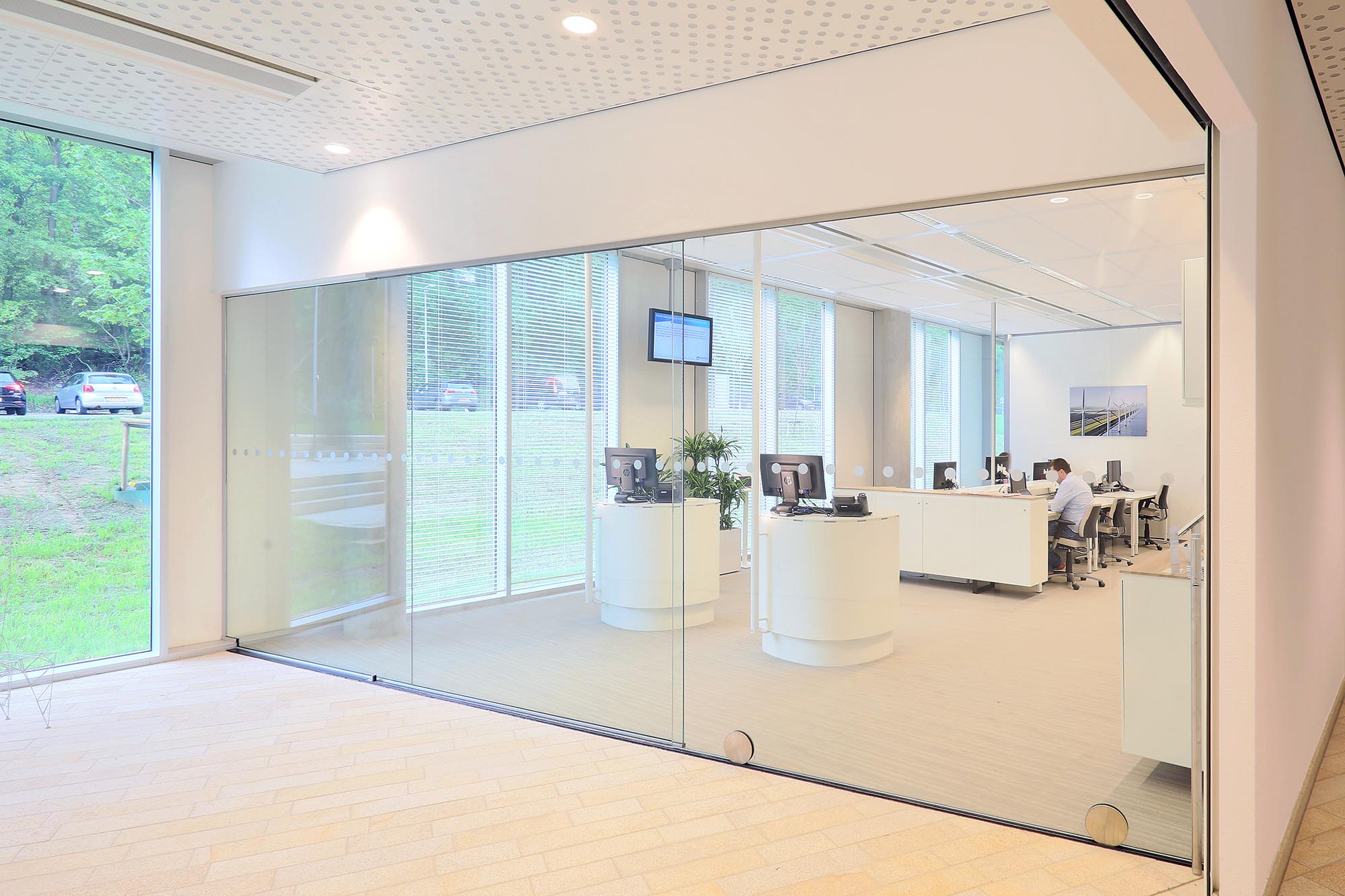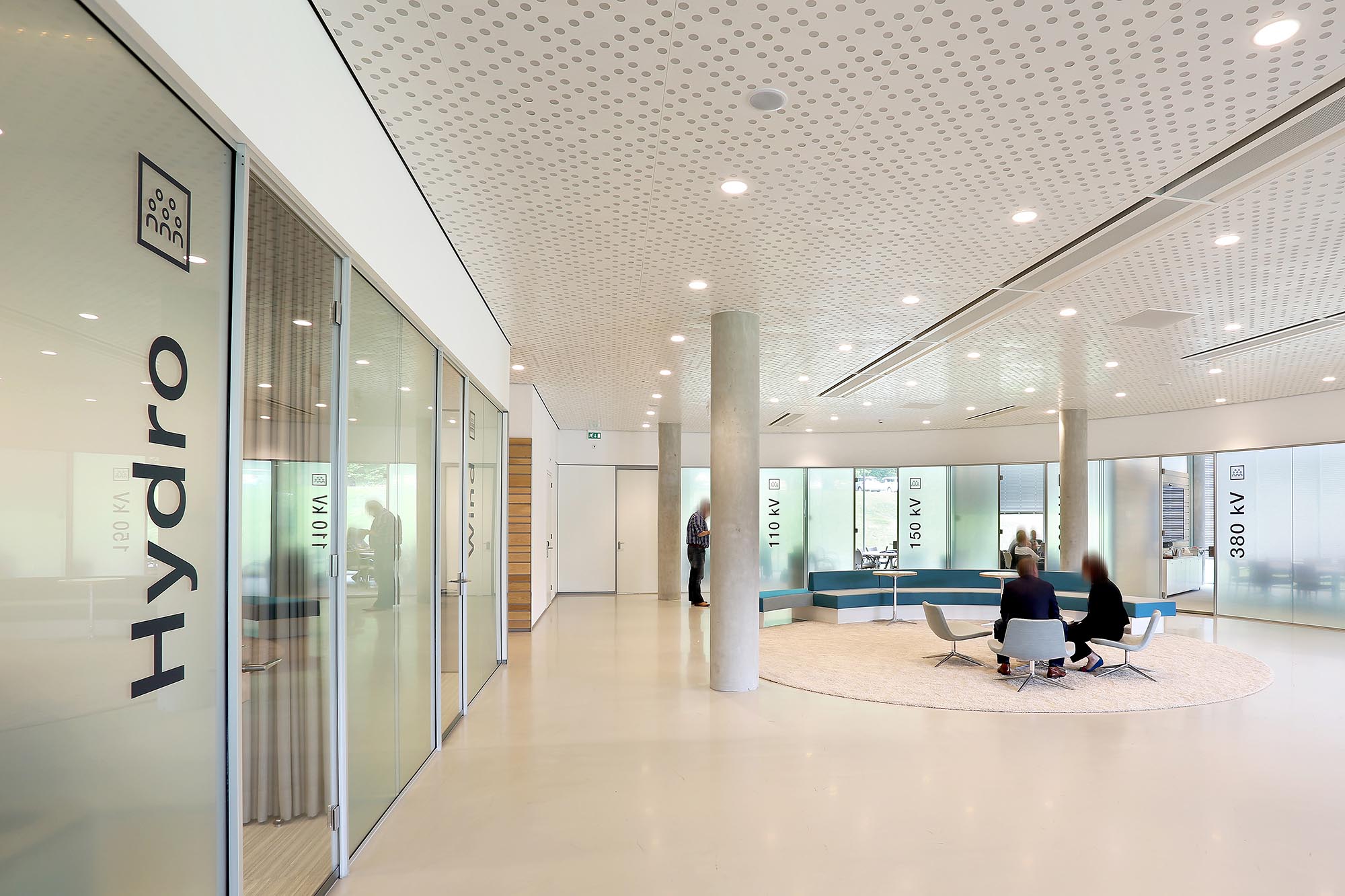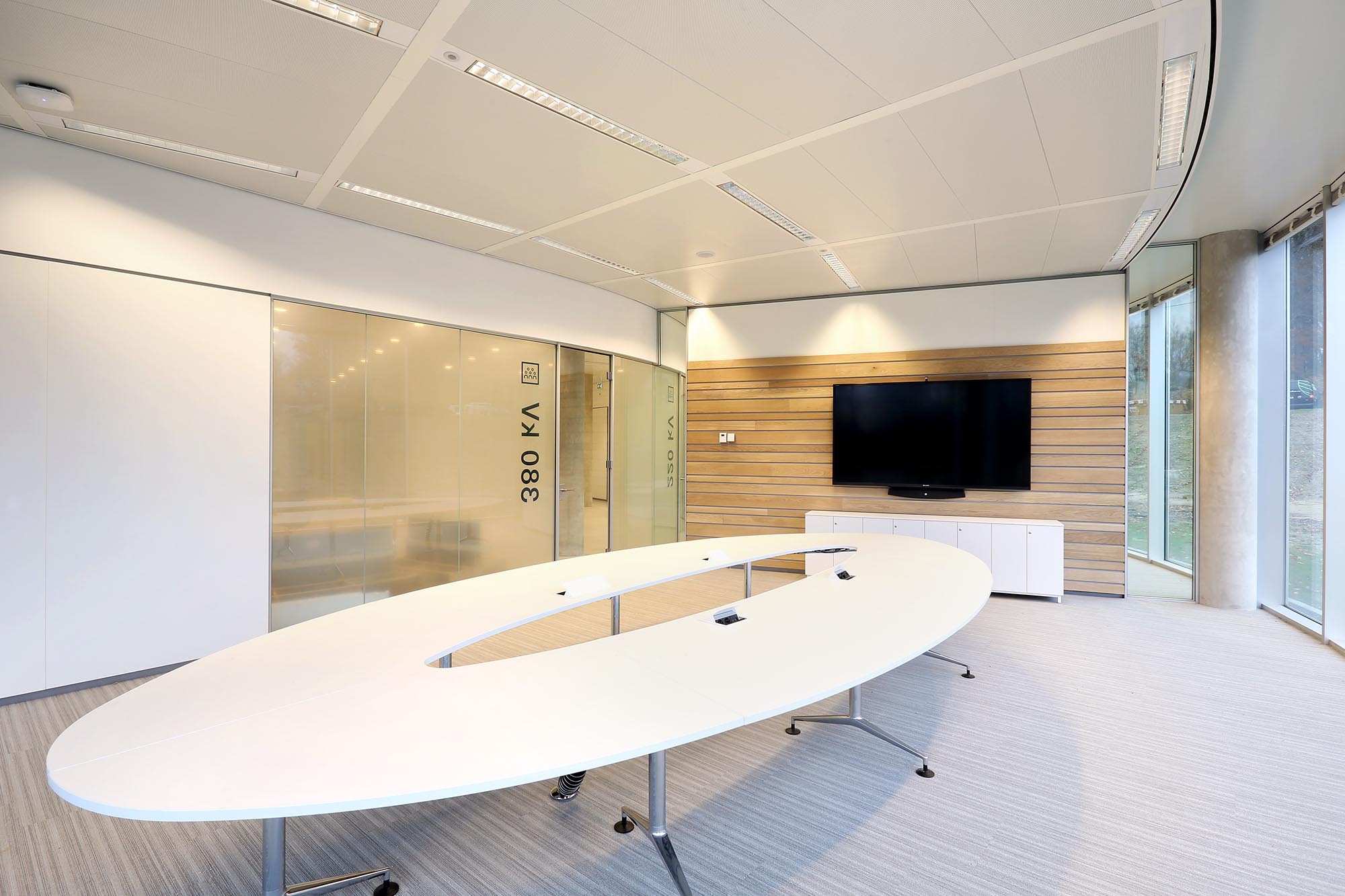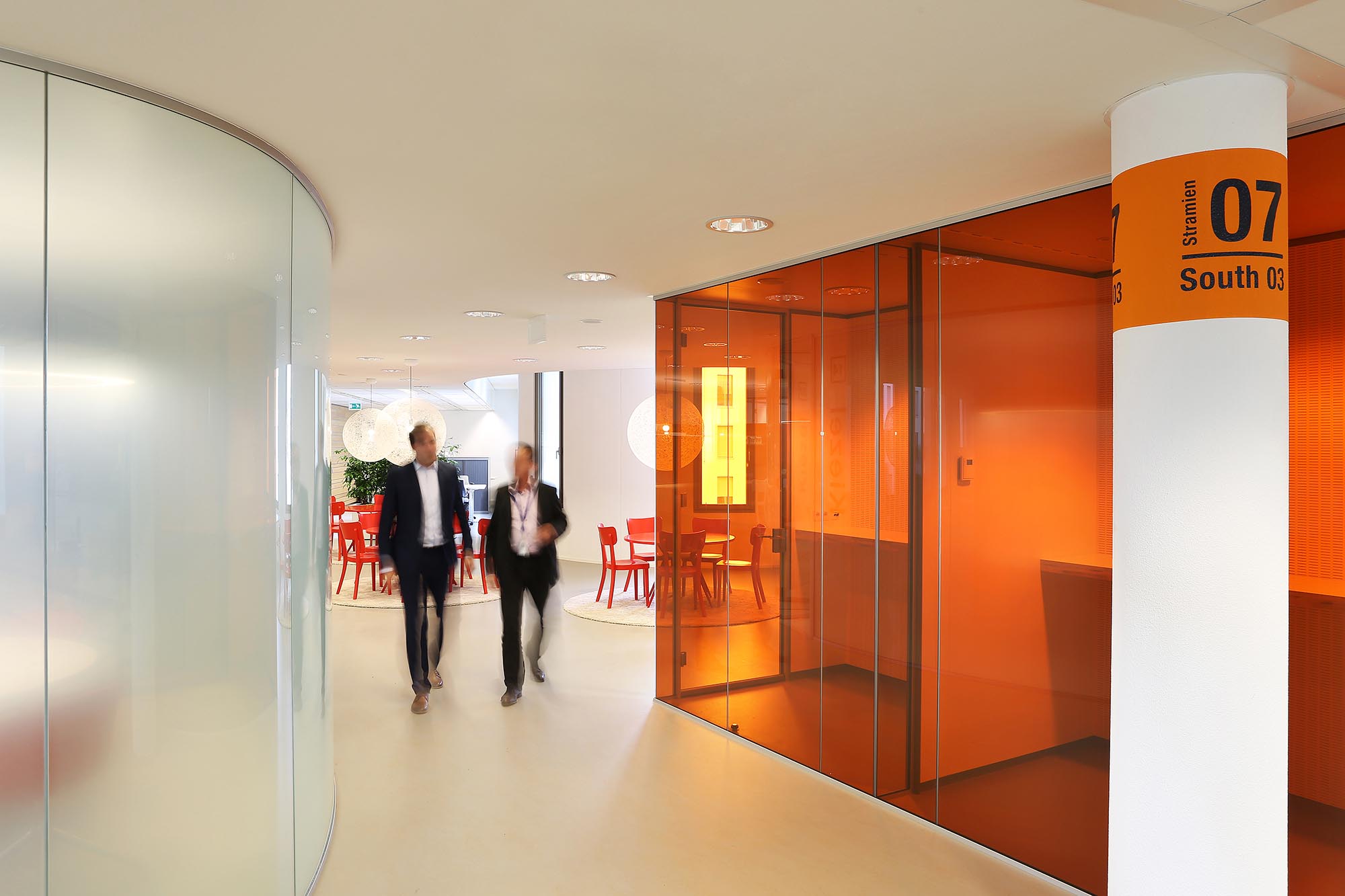 De geluidsisolatiewaarden van de wanden variëren van Rw=38dB t/m Rw=54dB en zijn ingedeeld naar de wens van de gebruiker. Zo is er een optimale werkomgeving gecreëerd met een hoge mate van privacy. Waar nodig zijn deuren met een geluidsisolatie van Rw=47dB toegepast in dit project.