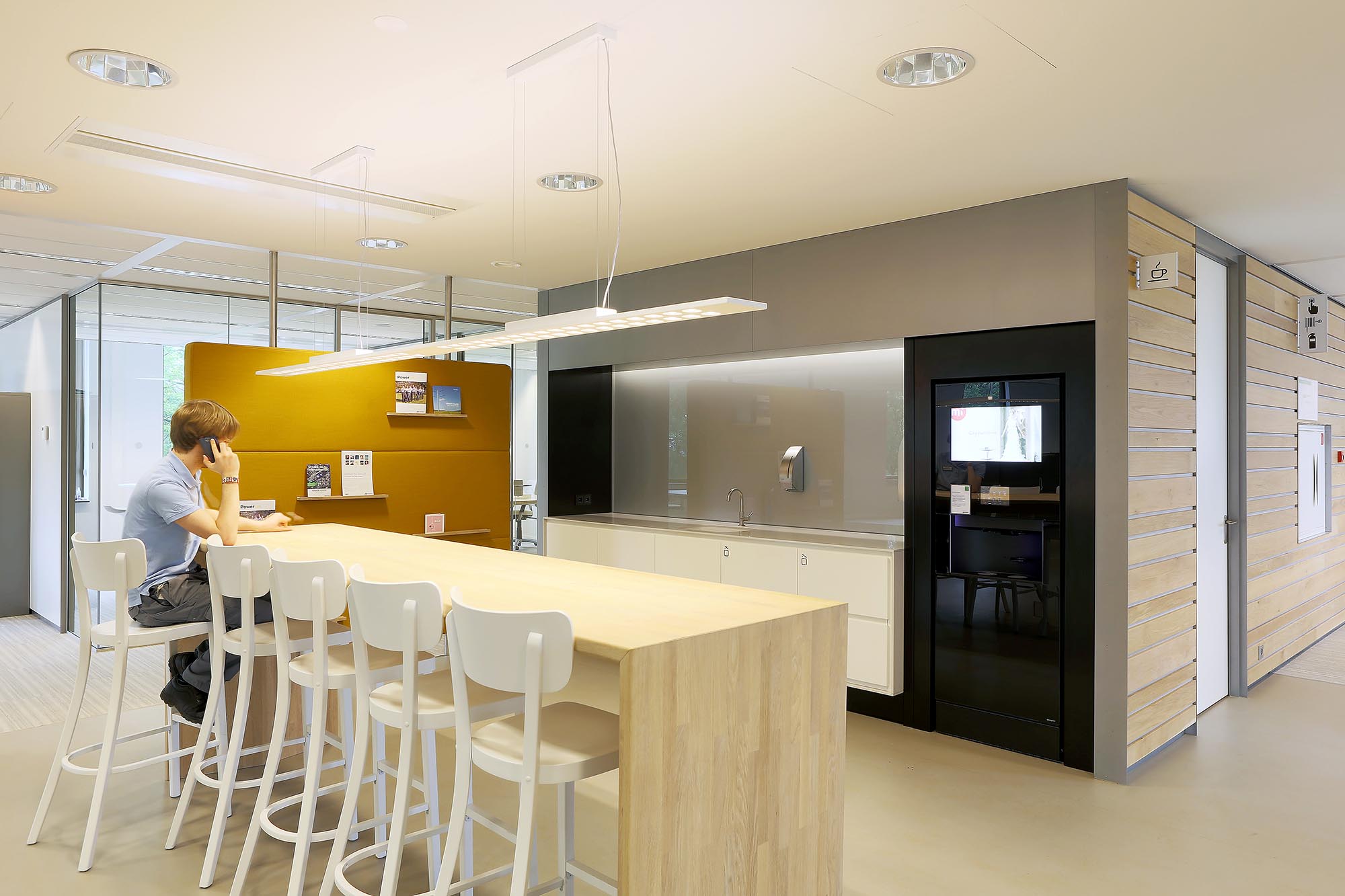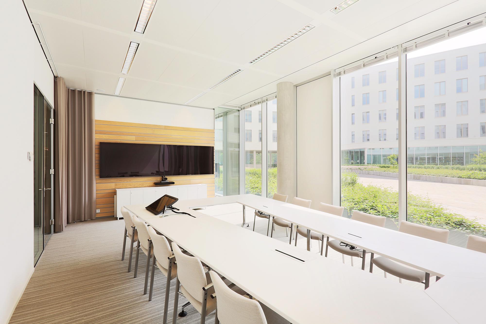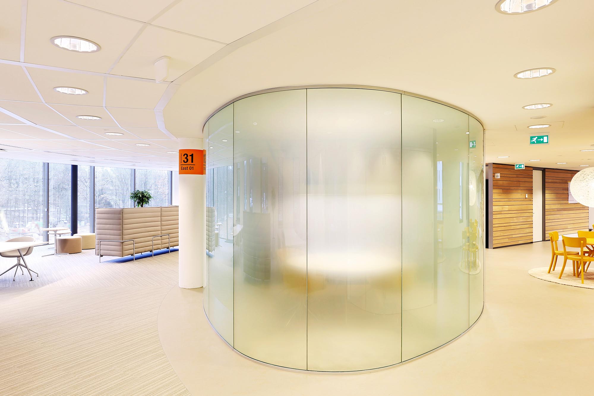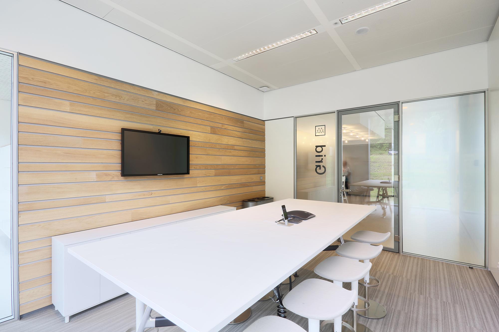De geluidsisolatiewaarden van de wanden variëren van Rw=38dB t/m Rw=54dB en zijn ingedeeld naar de wens van de gebruiker. Zo is er een optimale werkomgeving gecreëerd met een hoge mate van privacy. Waar nodig zijn deuren met een geluidsisolatie van Rw=47dB toegepast in dit project.