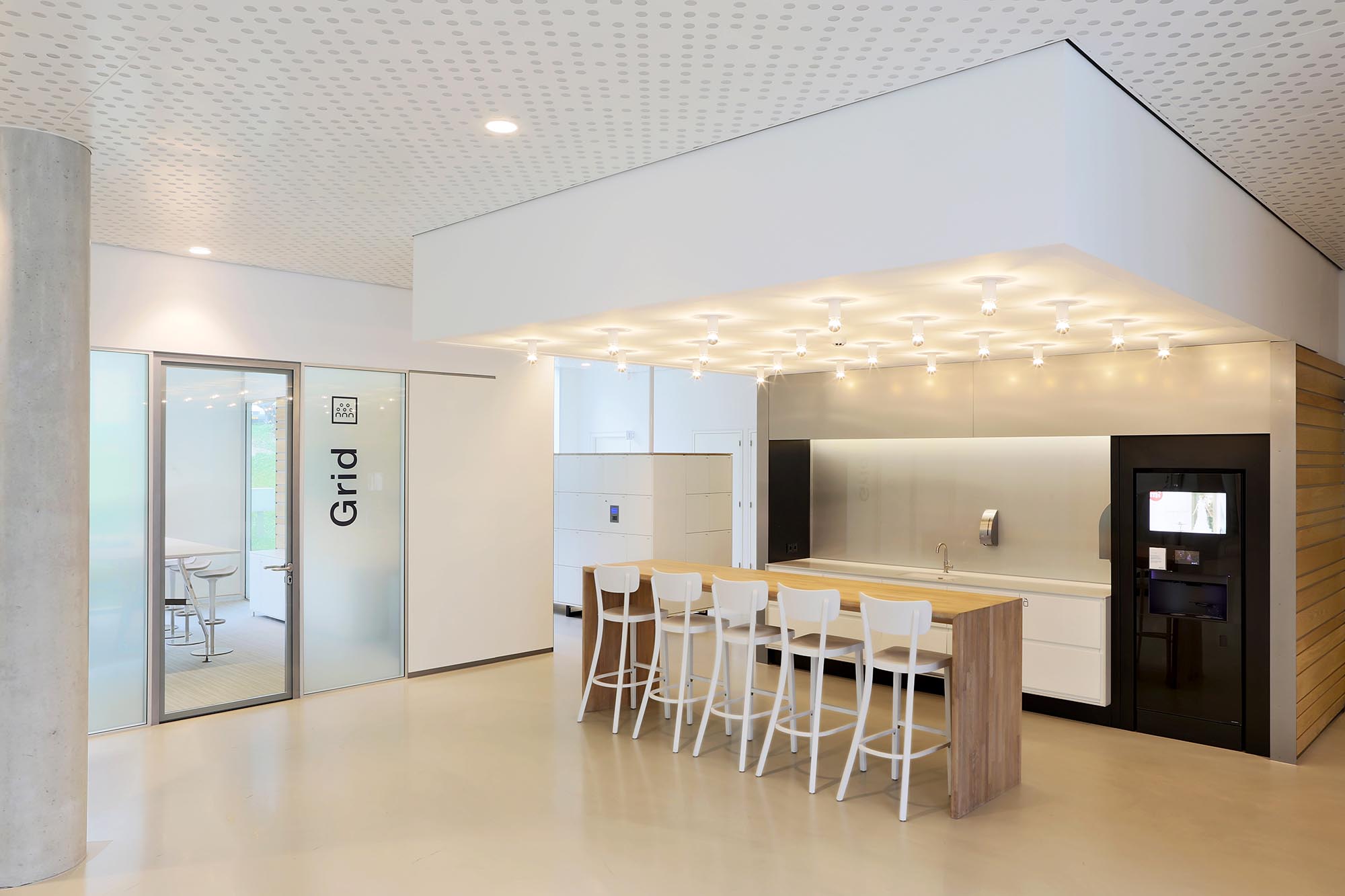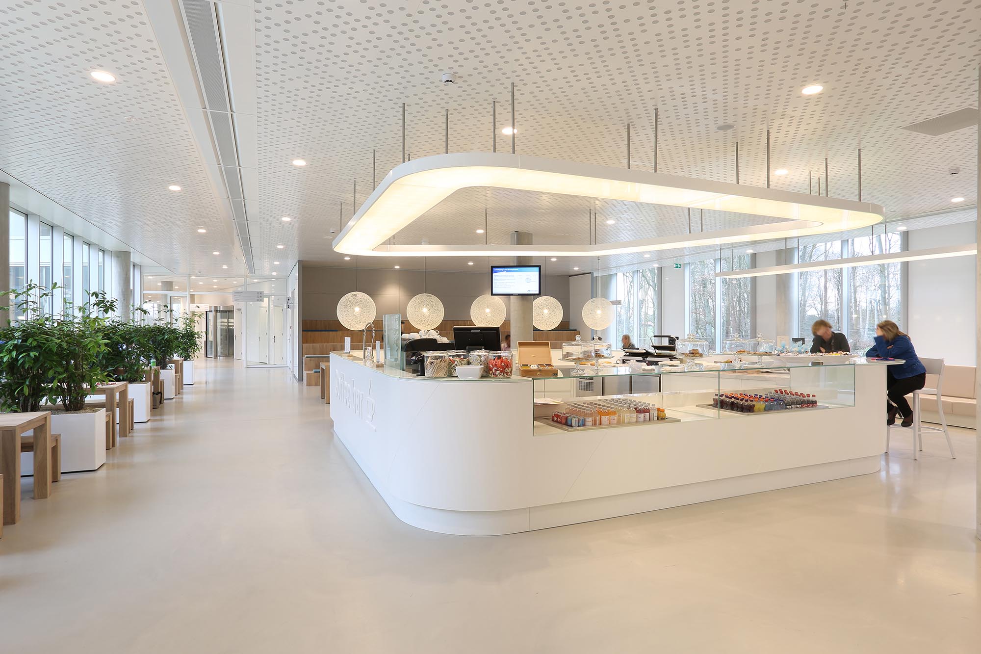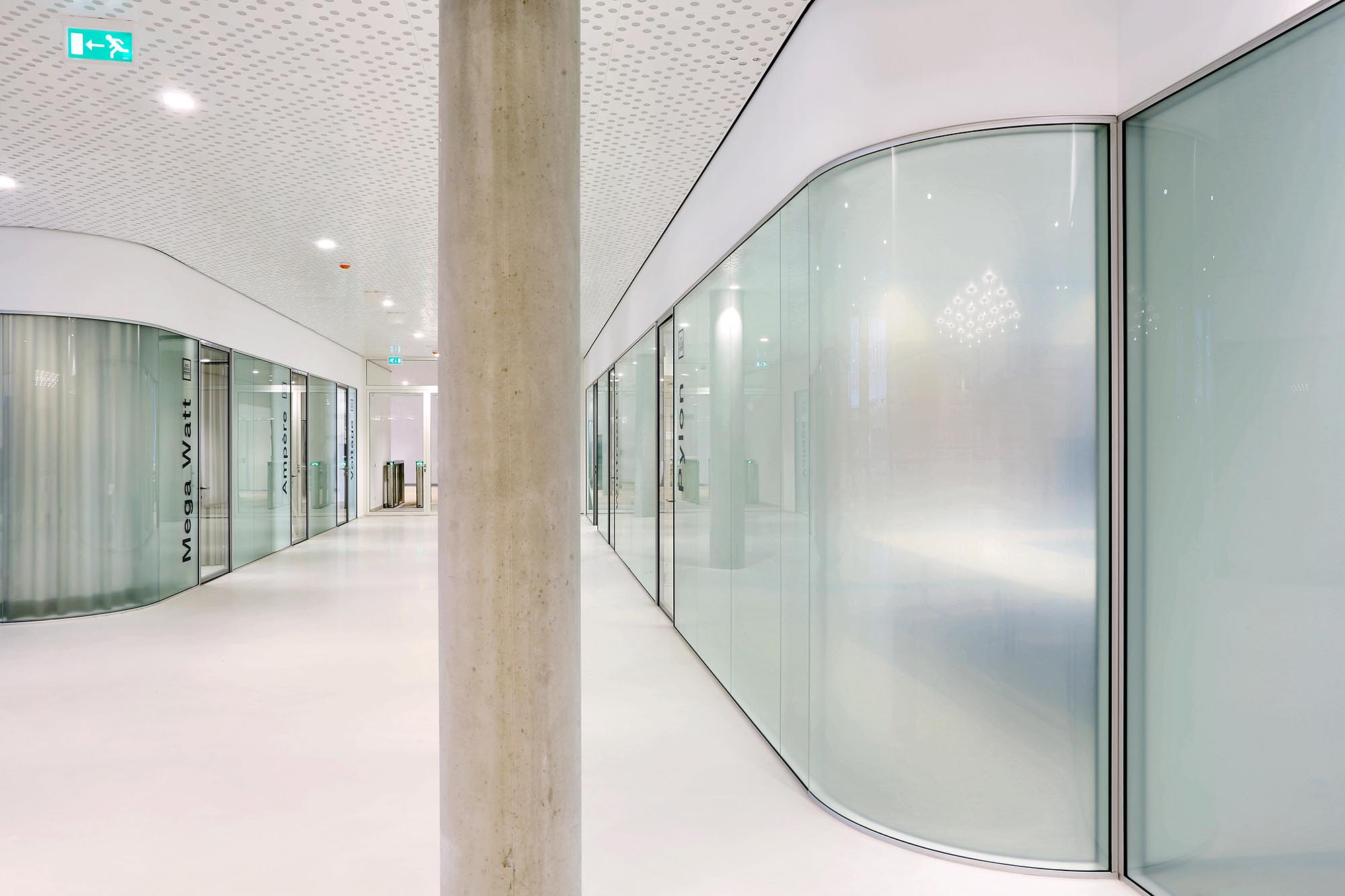 Het pand heeft een totale bruto vloeroppervlak van 34.000 m2. Hierin heeft Intermontage een grote variëteit aan systeemwanden en systeemplafonds mogen plaatsen. Een gedeelte van de wanden is bekleed met Derako.