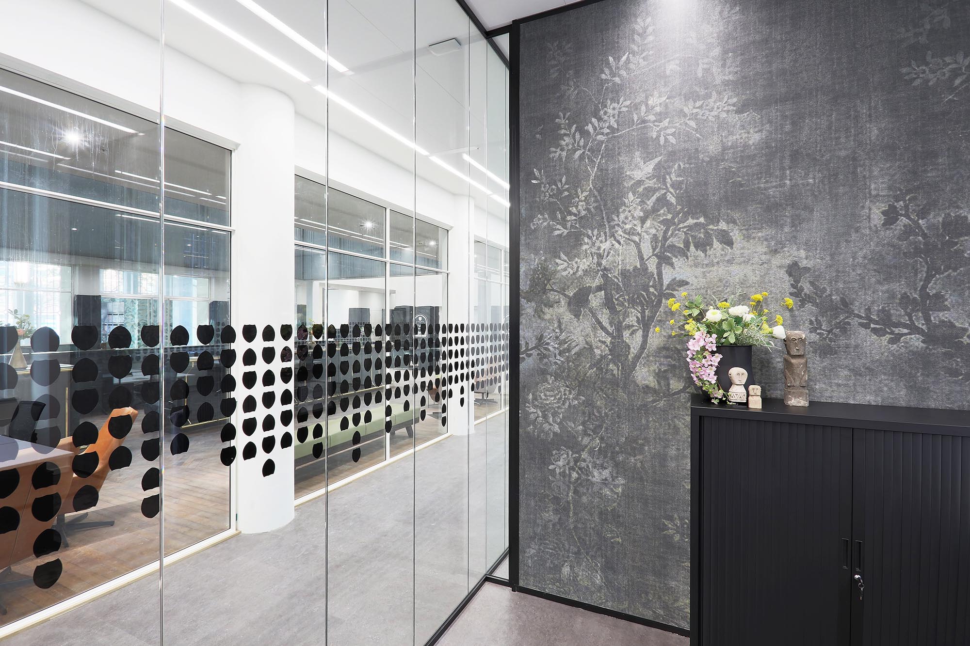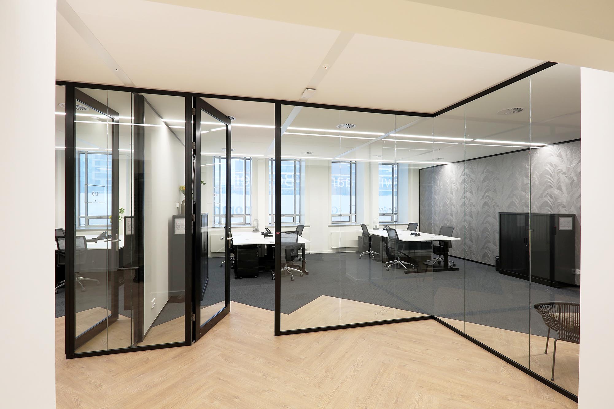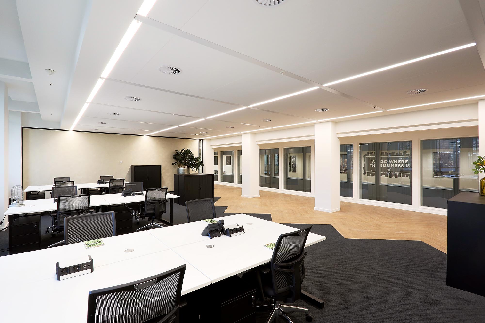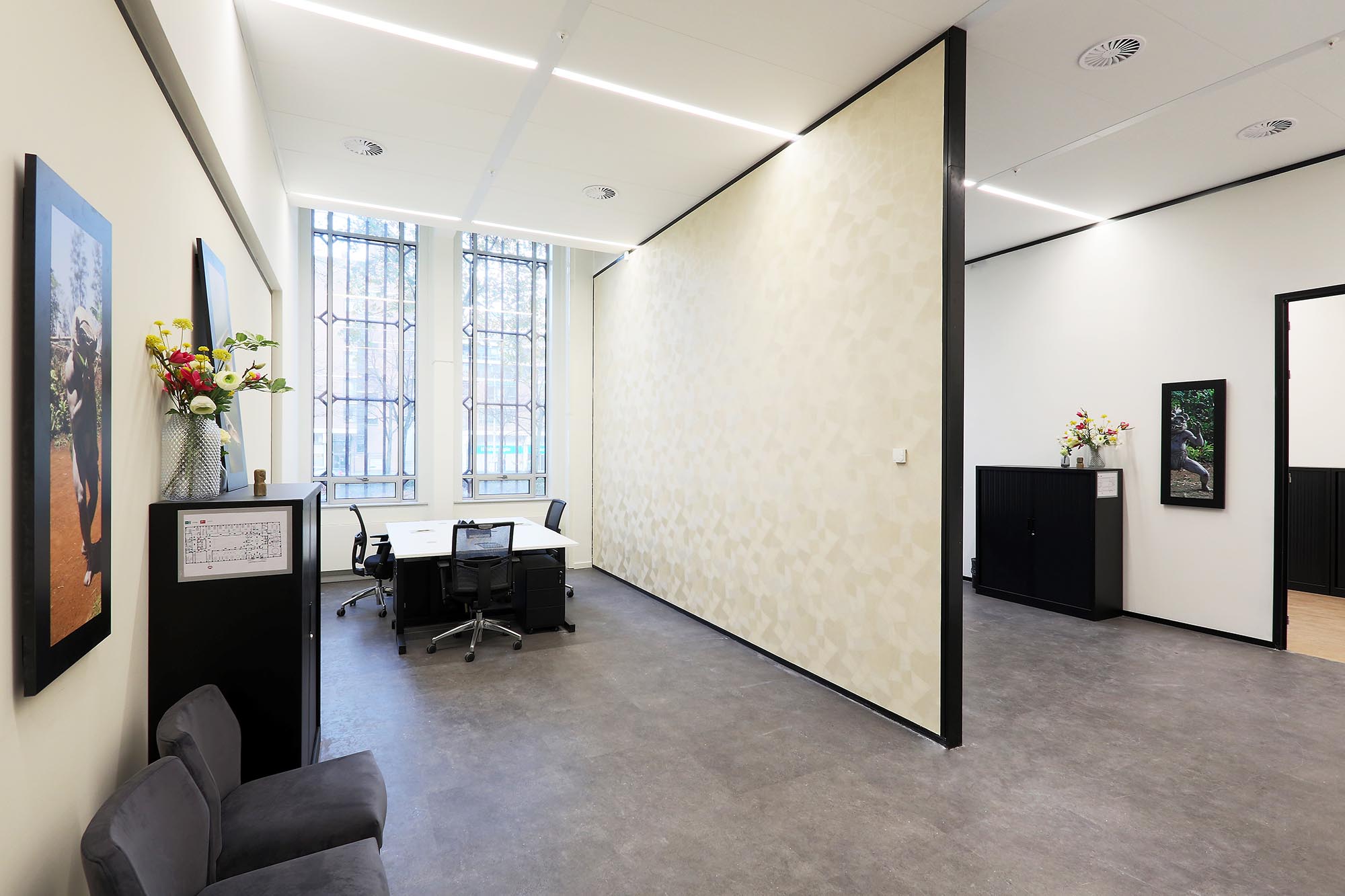 Intermontage heeft voor deze vestiging de tussenwanden (Metalstud de Luxe) en de glazen gangwanden verzorgd. De architecten van Ericis zijn er in geslaagd het monumentale karakter van het pand te vertalen in een frisse, open werkomgeving. Met glaswanden tot 3600 mm hoog wordt er zoveel mogelijk gebruik gemaakt van het bestaande daglicht.