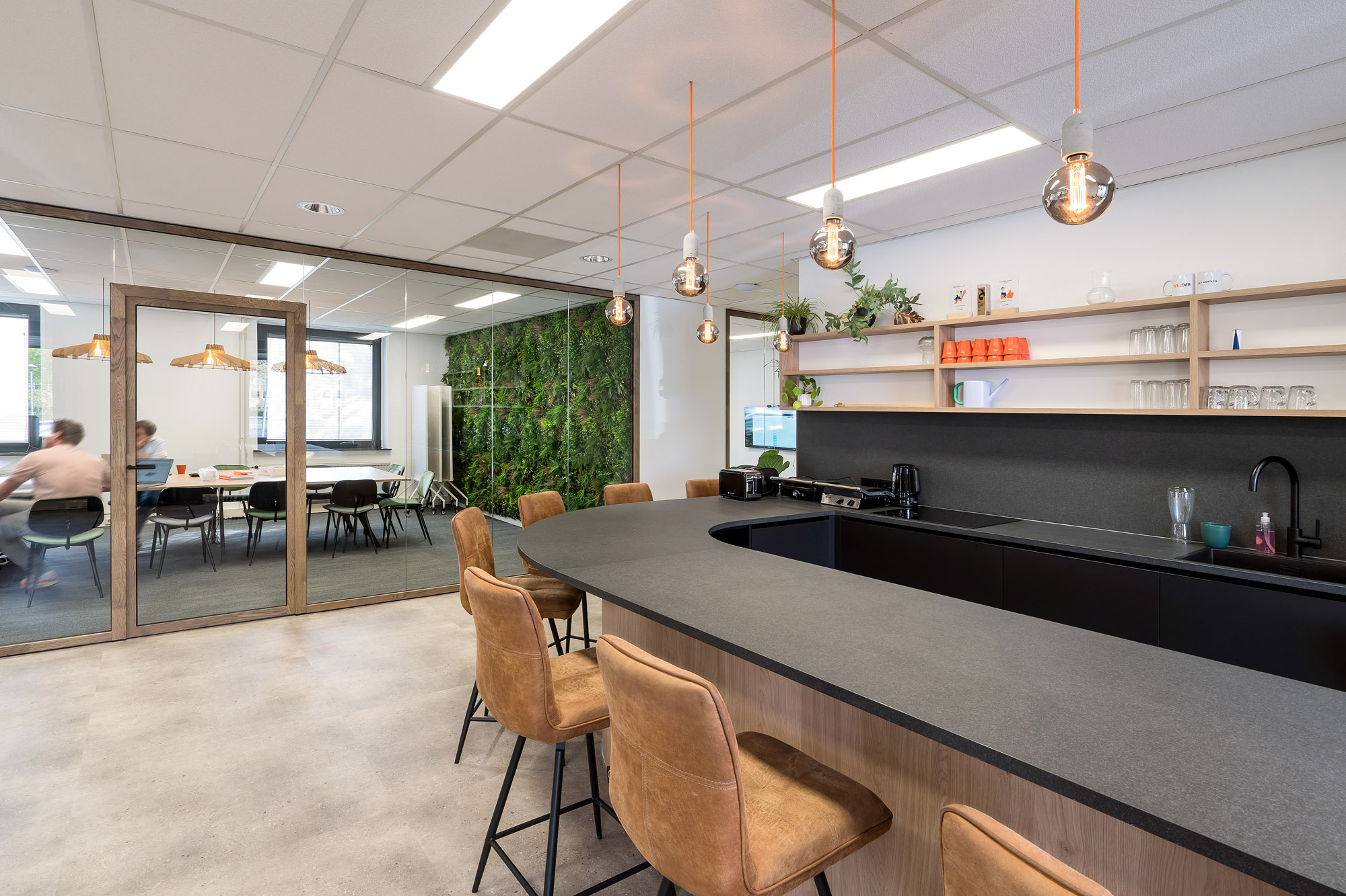 Het nieuwe kantoor van WELDER is ontworpen door Factor-B uit Eindhoven. Het eindresultaat is een heldere en open werkplek met veel mogelijkheden om samen te werken. De glaswanden zijn uitgevoerd als WoodFrame Slim, onze duurzame glaswand. Veel groen, glas en voldoende ontmoetingsplekken zorgen voor een sfeervol kantoor waar je als werknemer graag wil zijn.