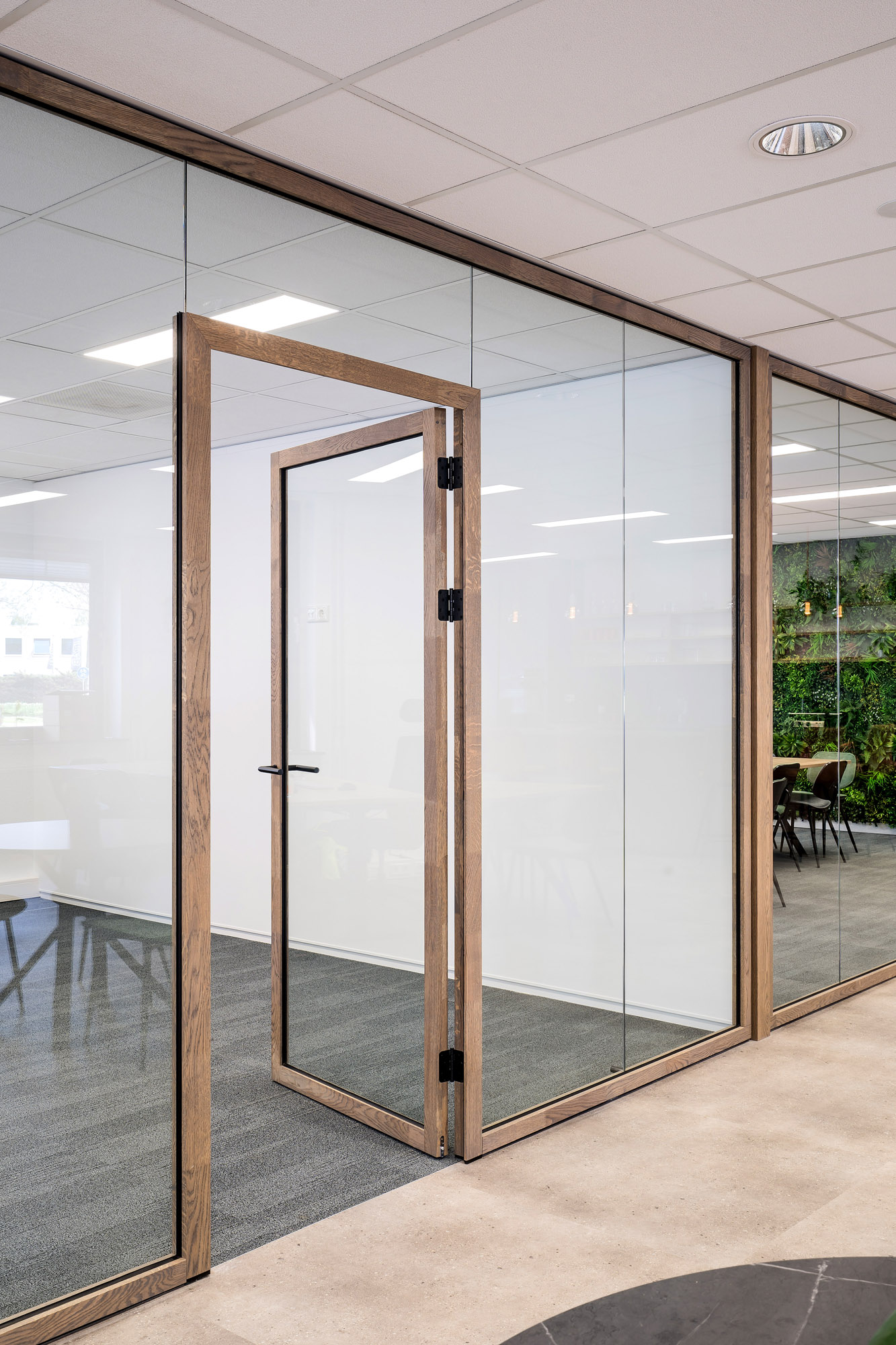 Duurzame glaswand in modern kantoor