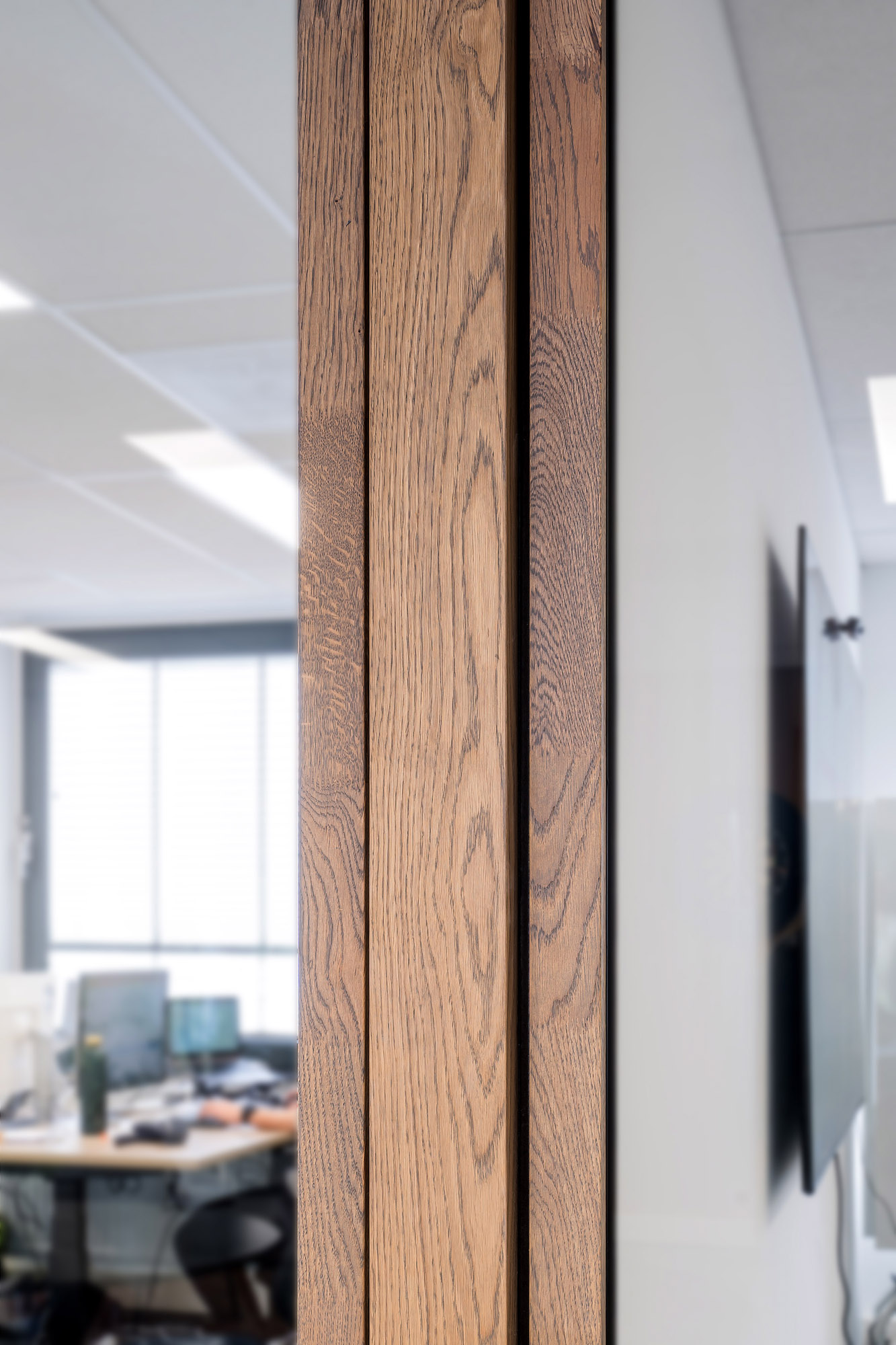 De profielen van de WoodFrame Slim zijn op gebouwd uit massief eiken. Een duurzaam product van Europese bodem met FSC® certificering. Het eikenhout is namelijk voor 90% afkomstig uit productierestanten van de meubelindustrie en is zorgvuldig gesorteerd op kwaliteit en kleur. Deze stukken Europees eiken worden daarna gelamineerd, gevingerlast en geschaafd om zo tot de 60mm profielen te komen die deze glazen systeemwand haar duurzame en warme uitstraling geeft.