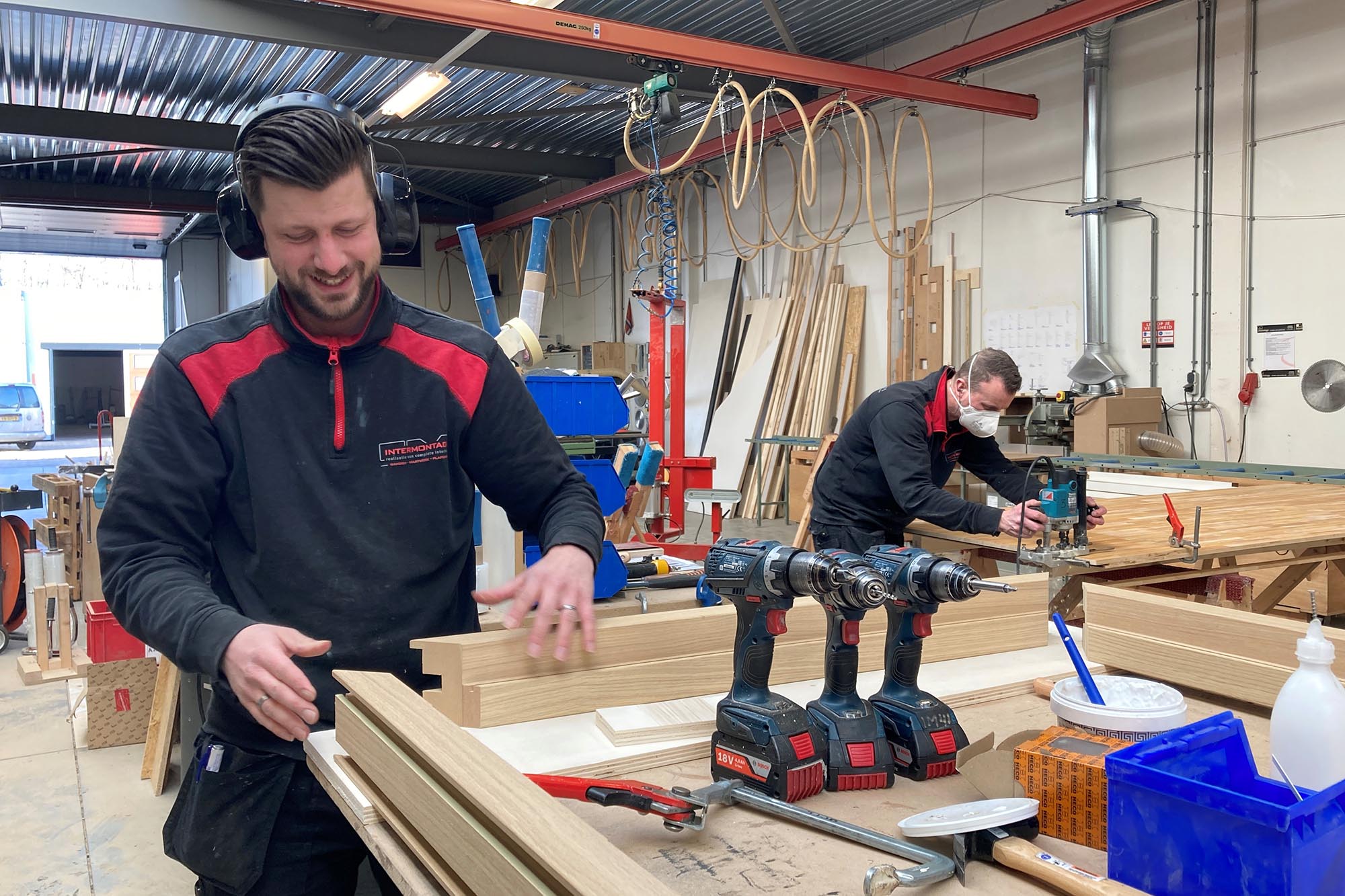 Intermontage realiseert complete interieurs. Wij zijn gespecialiseerd in systeemwanden, systeemplafonds en maatwerk interieur, allemaal onder één dak. Wij zijn een familiebedrijf met meer dan 100 medewerkers. We produceren en monteren wanden en plafonds, voornamelijk bij andere bedrijven. De interieurafdeling zorgt voor het maatwerk meubilair. Wij nemen regelmatig de coördinatie van een totaalproject op ons. Wij beschikken over eigen productielijnen op ons terrein in Terwolde. Mocht er een vraag van een klant komen, zorgen wij voor de juiste oplossing. De vele soorten systeemwanden, systeemplafonds en maatwerk meubels worden in ons Interieurcentrum in Terwolde getoond.