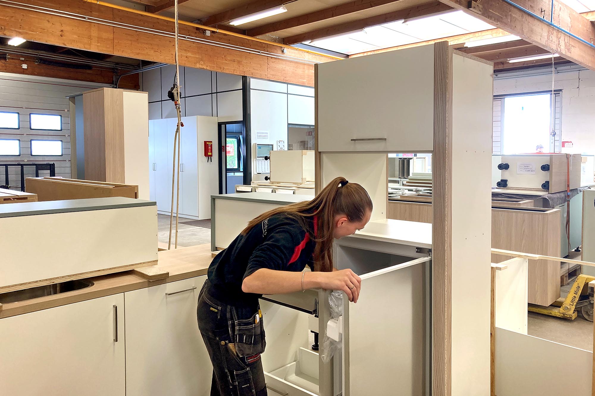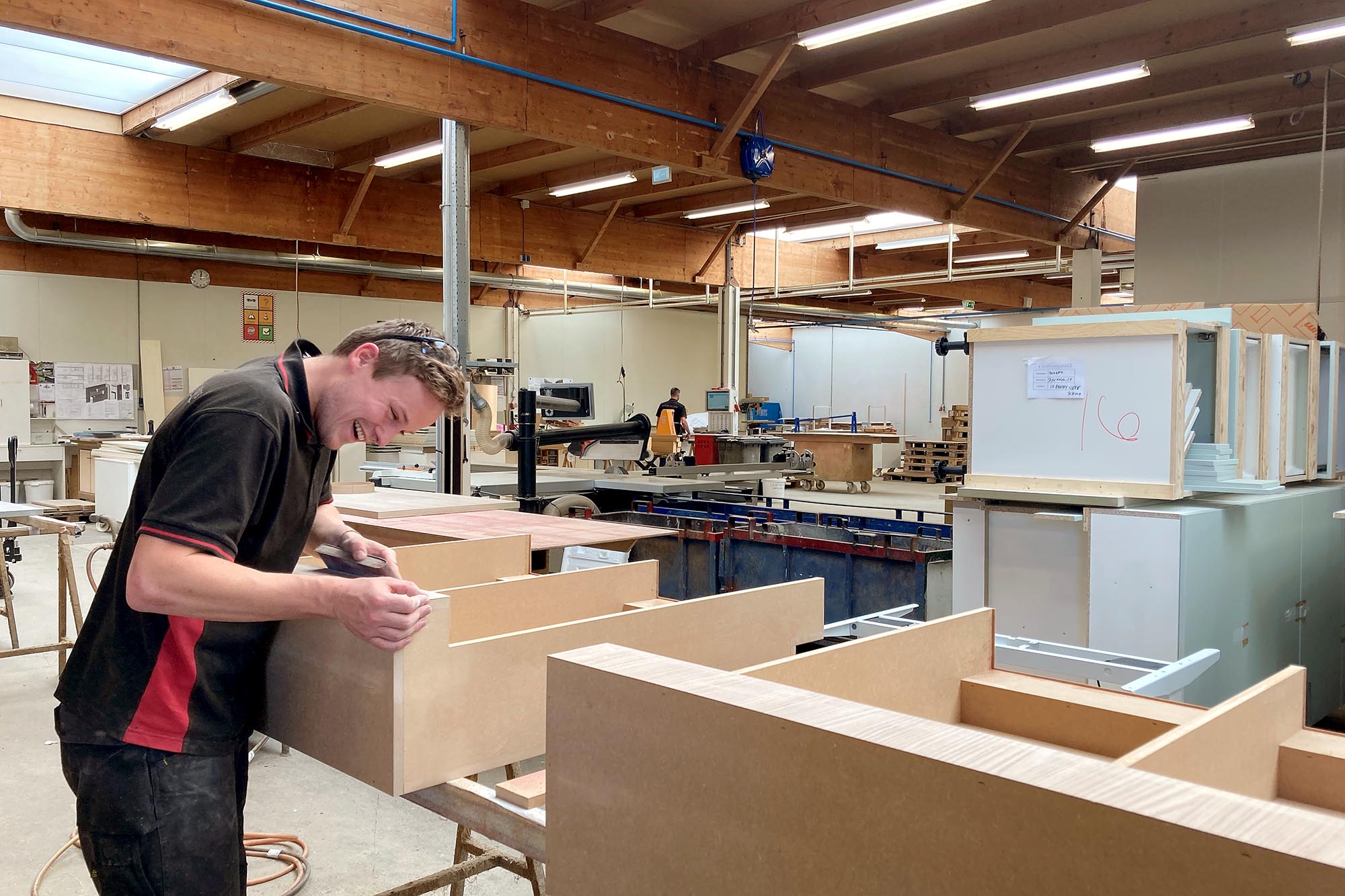 “Wat ik fijn vind, is dat ik hier van begin tot eind verantwoordelijk ben voor wat ik maak. Ik bewerk het hout, controleer of alles klopt, en als er iets afwijkt, los ik het zelf op. Je zorgt dat de werkplek schoon blijft, de voorraad op orde is en dat de kwaliteit gewoon goed is. Dat geeft aan het eind van de dag echt voldoening.”